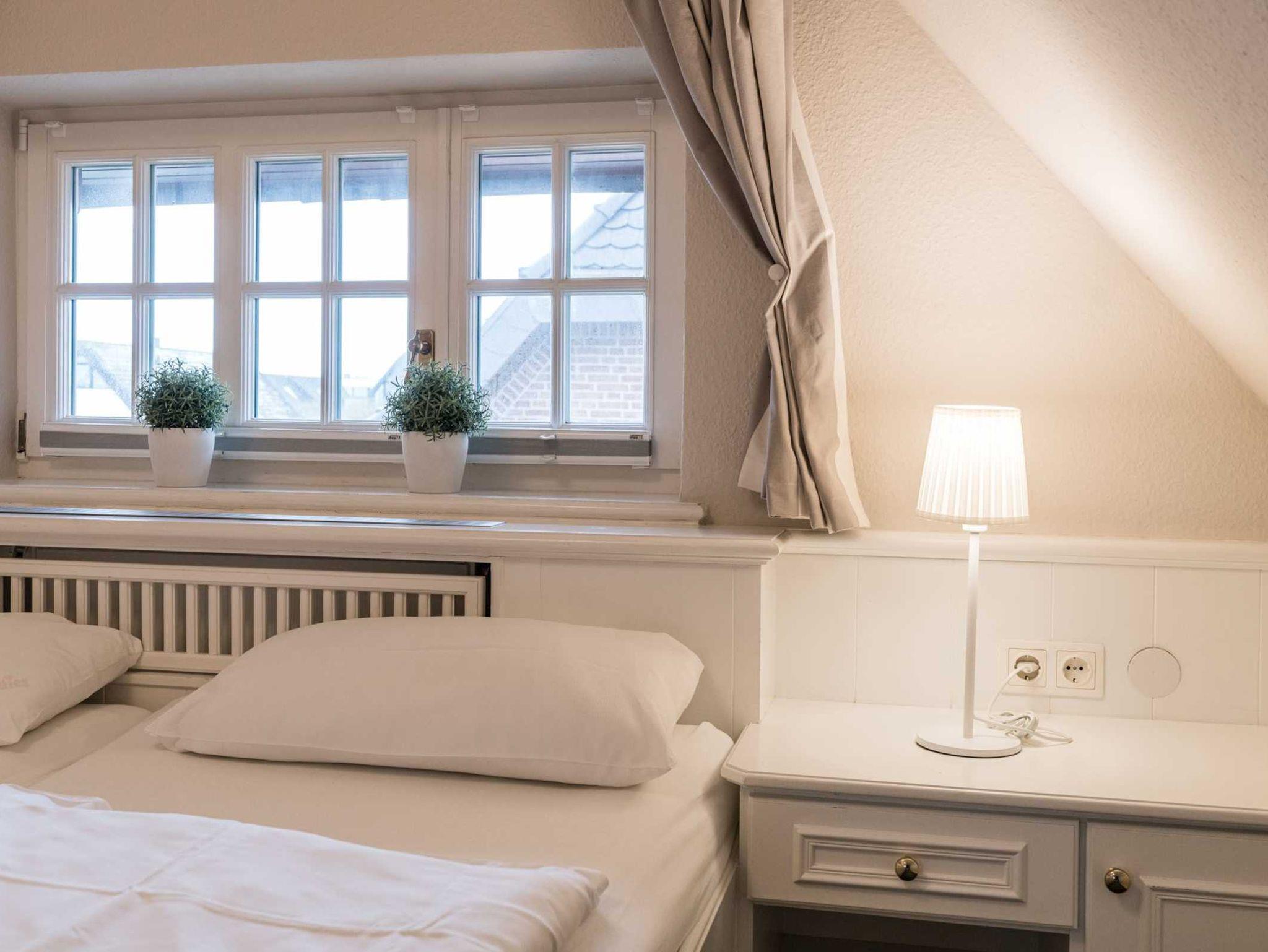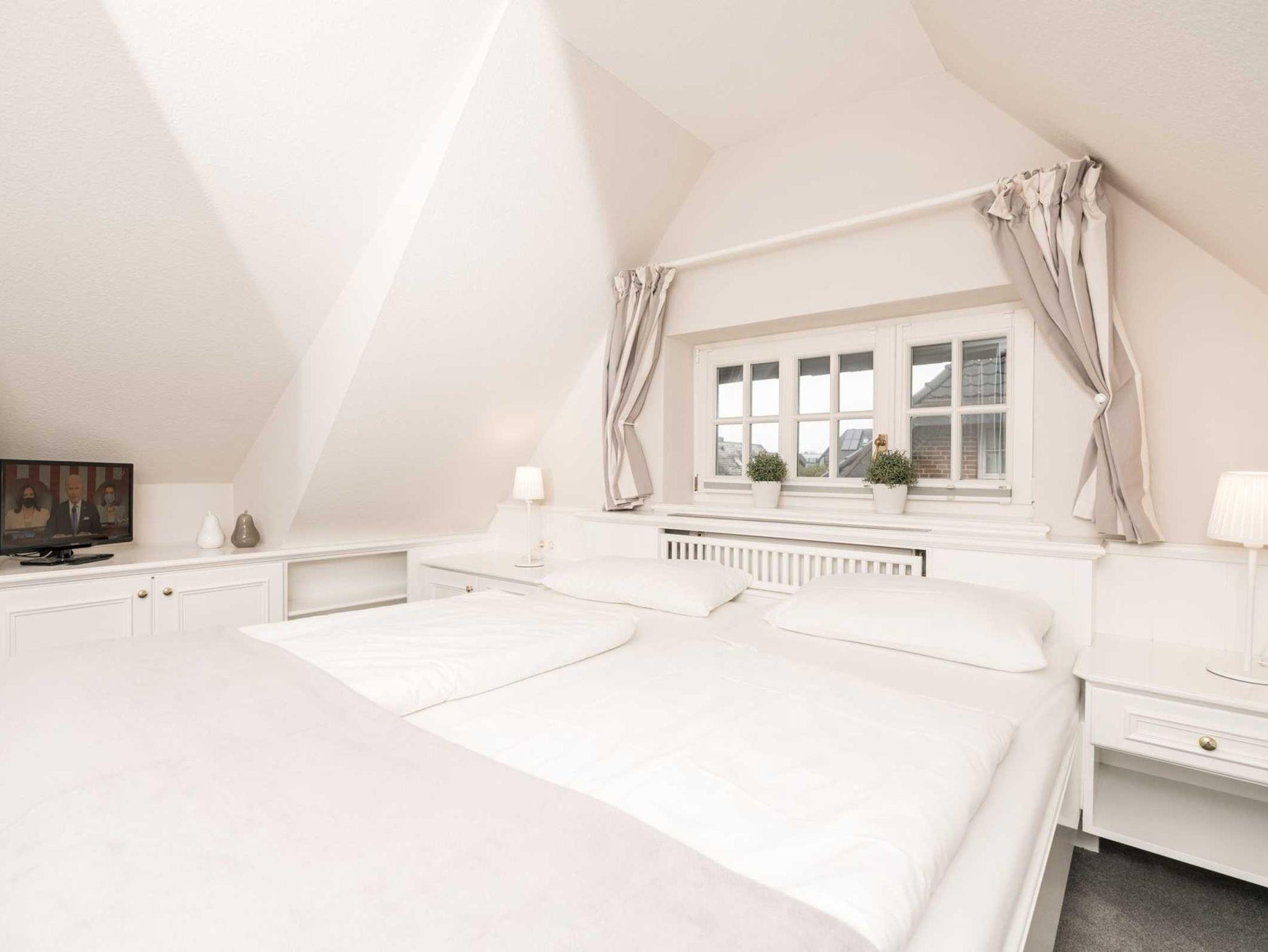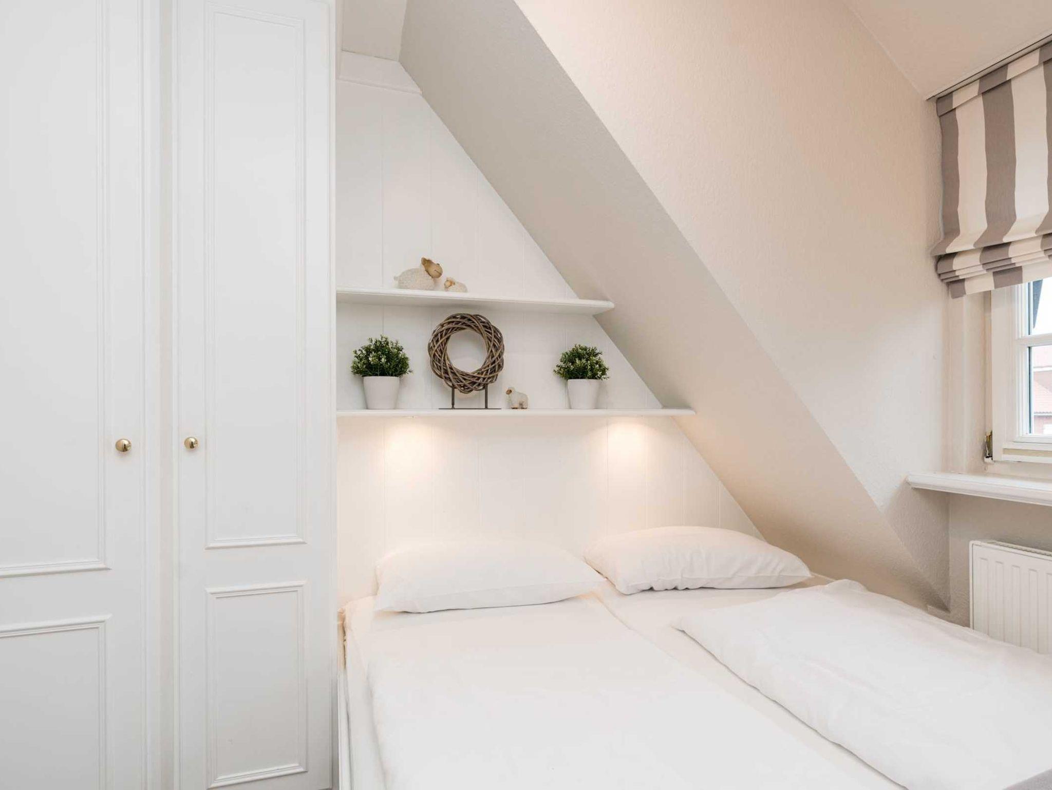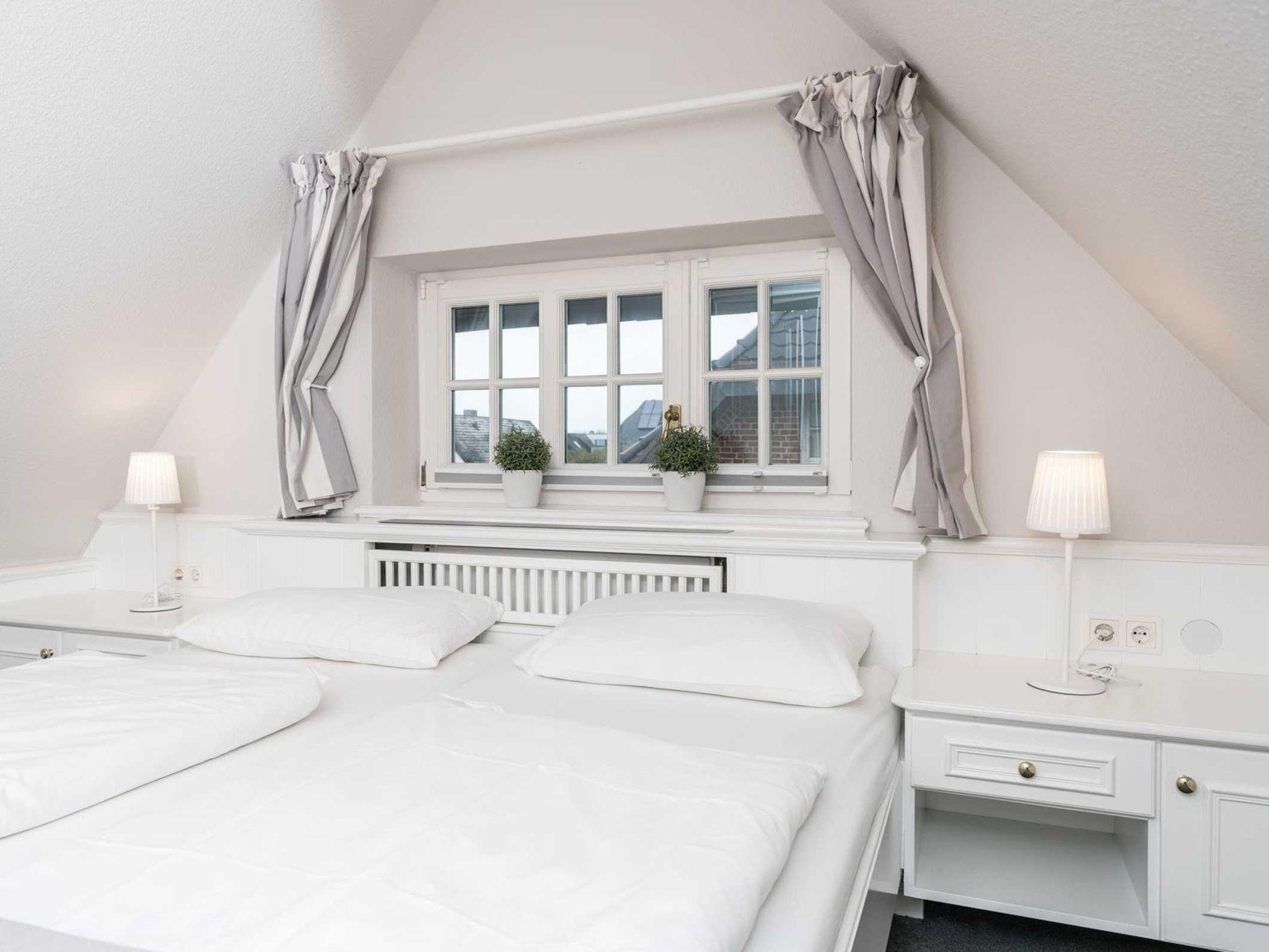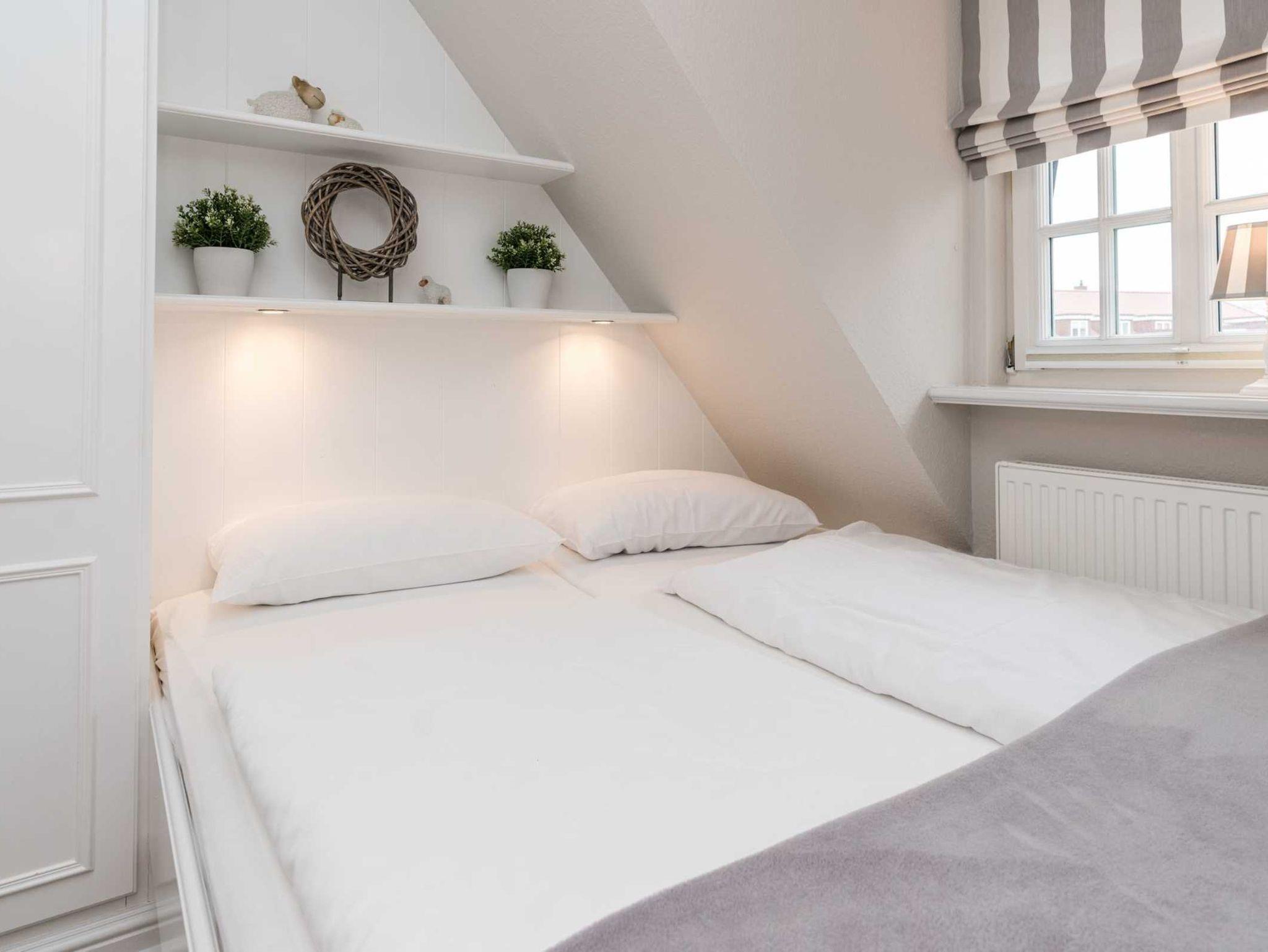 Im OG. befindet sich der helle und sehr schön eingerichtete Wohnraum mit Zugang zu dem sonnigen und grosszügig bemessenen Westbalkon mit Strandkorb. Die separate Küche ist voll ausgestattet. 1 Schlafraum mit Doppelbett und hochwertigen Einbauschränken. 1 helles Duschbad mit Doppelwaschbecken und WC.