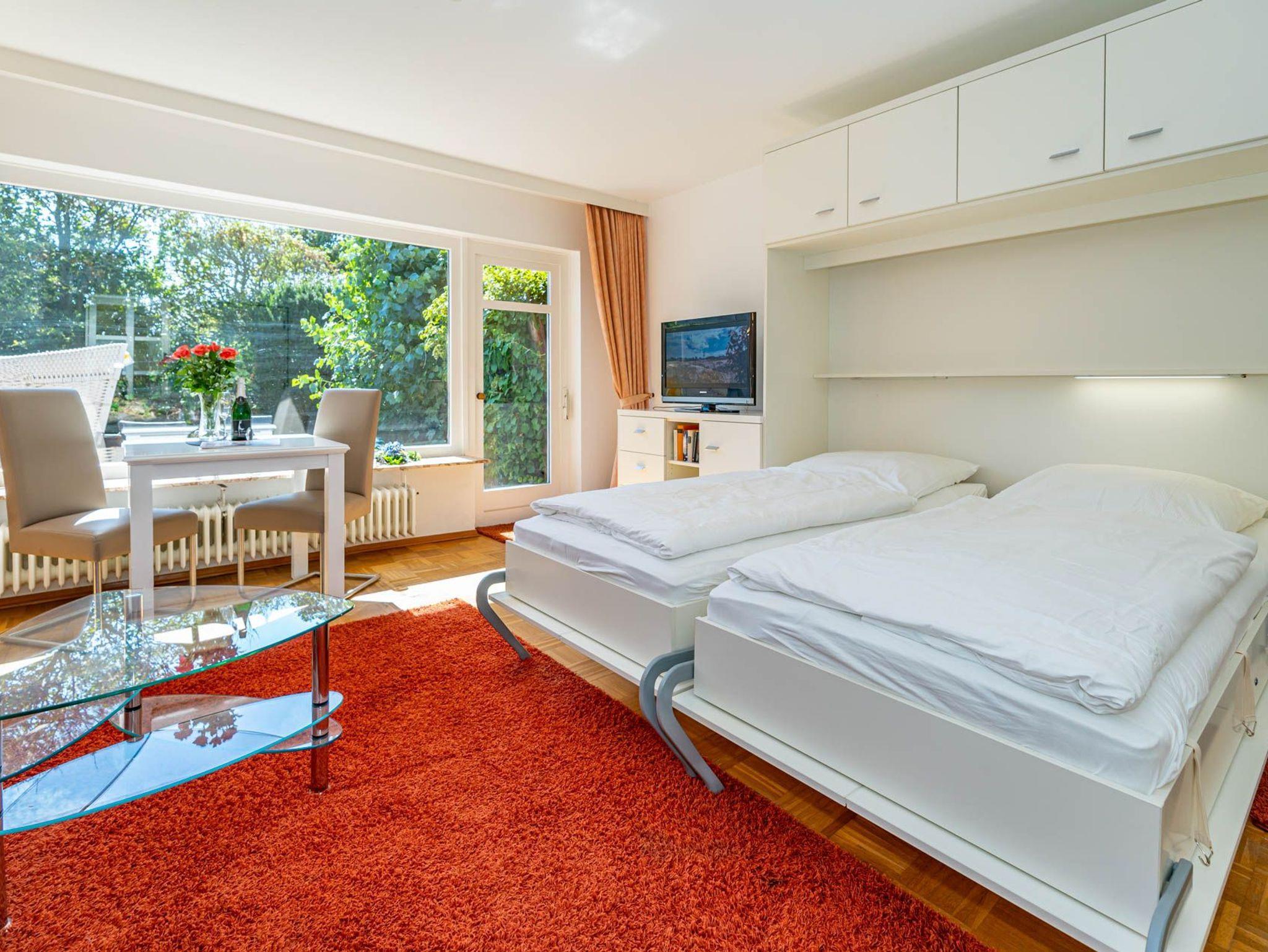 Diese großzügig geschnittene, renovierte 1-Zimmer-Nichtraucherwohnung (ca. 40 m²) befindet sich im Erdgeschoss eines gepflegten Hauses in angenehm ruhiger Wohnlage ideal für erholsame Urlaubstage zu zweit. Die charmante Ferienwohnung überzeugt mit einem durchdachten Grundriss, hochwertiger Ausstattung und einem sonnigen Außenbereich.