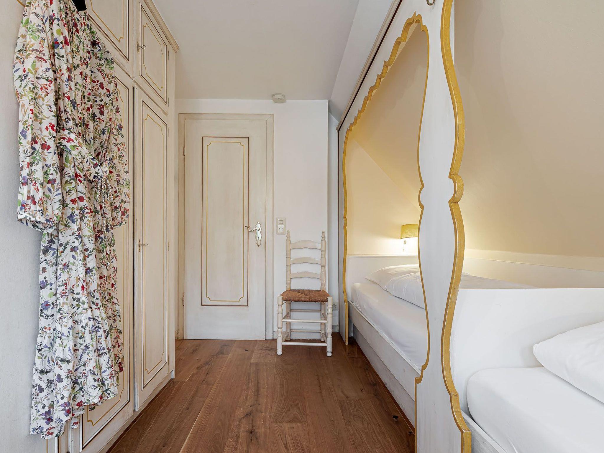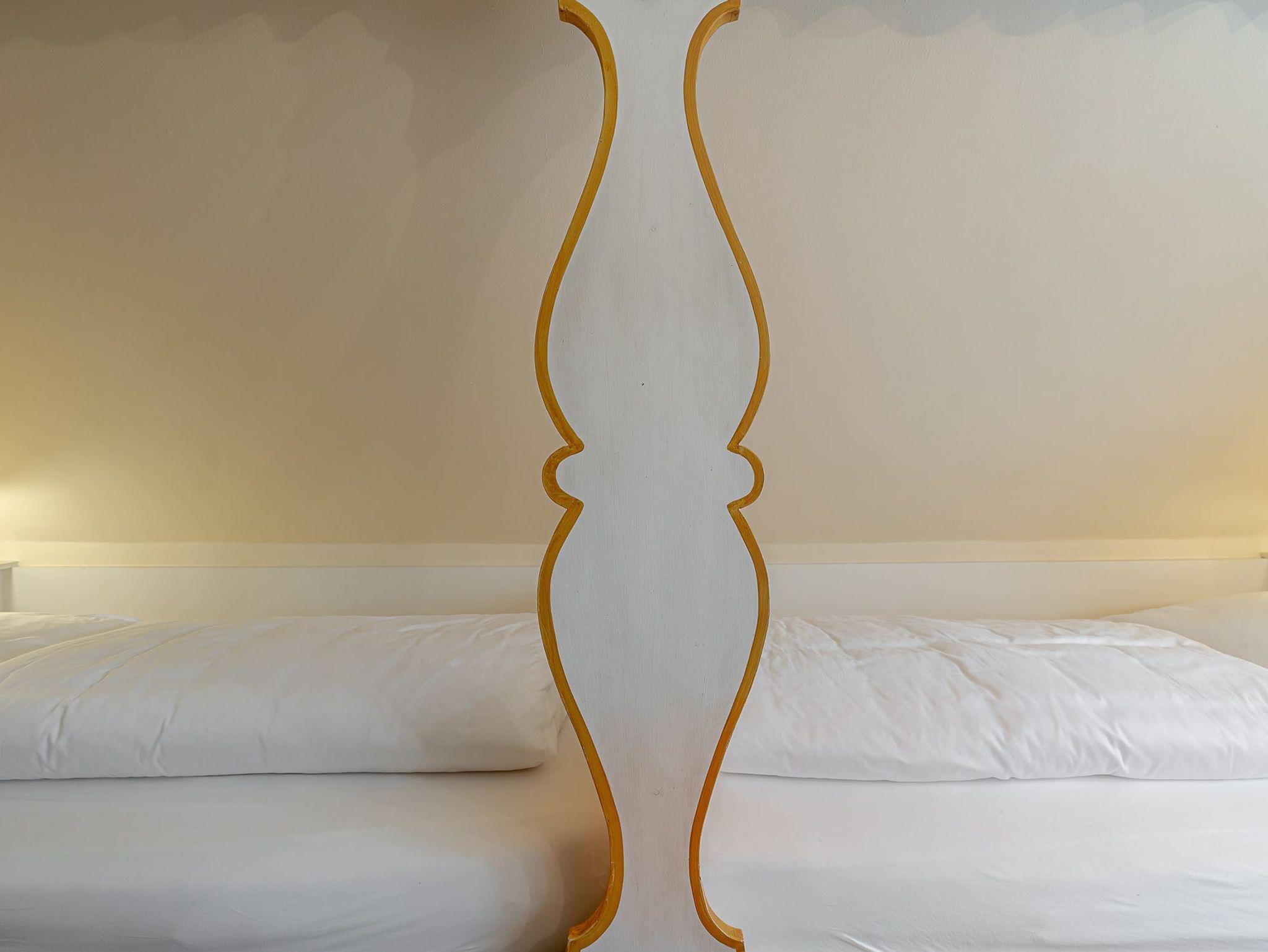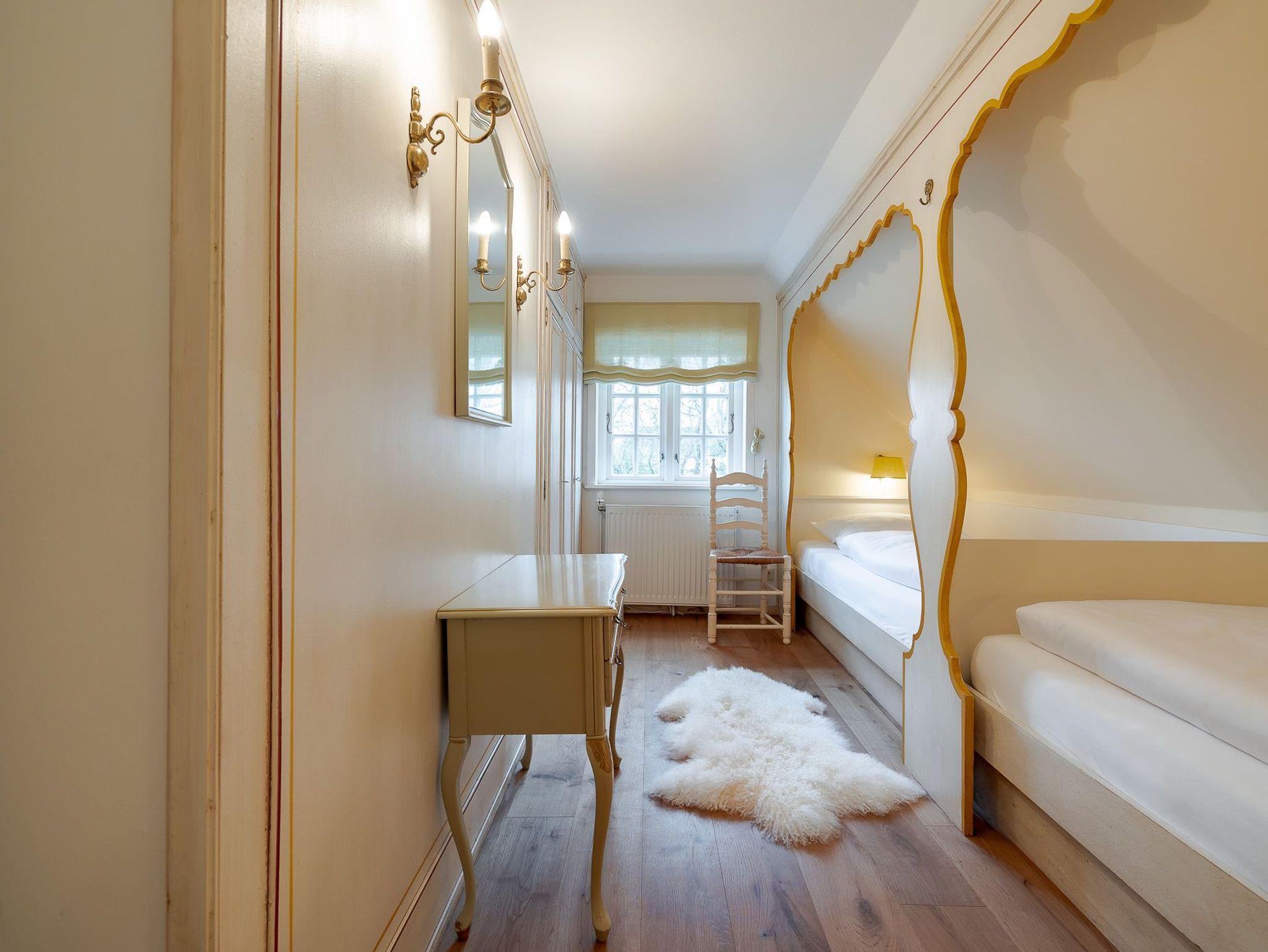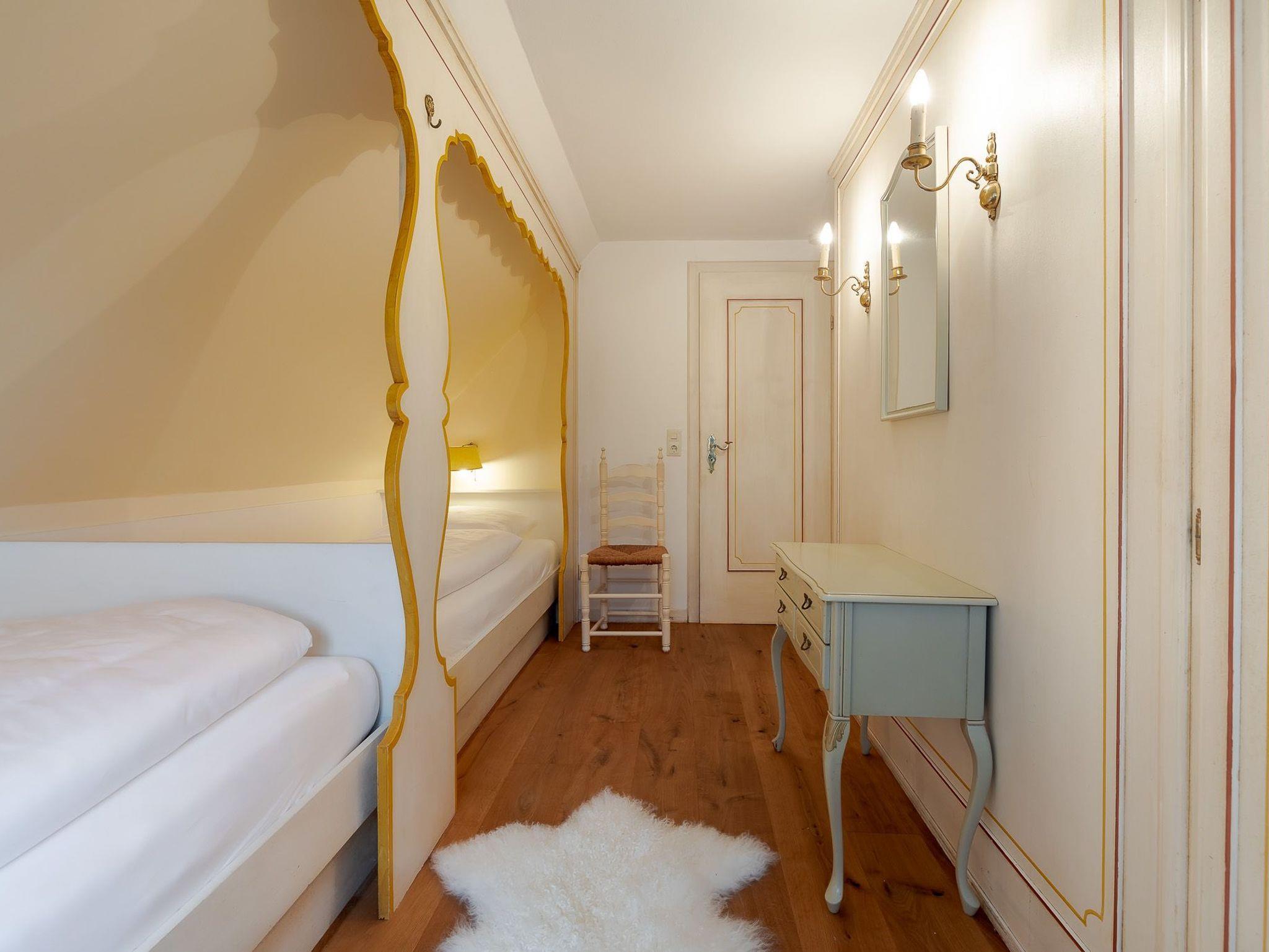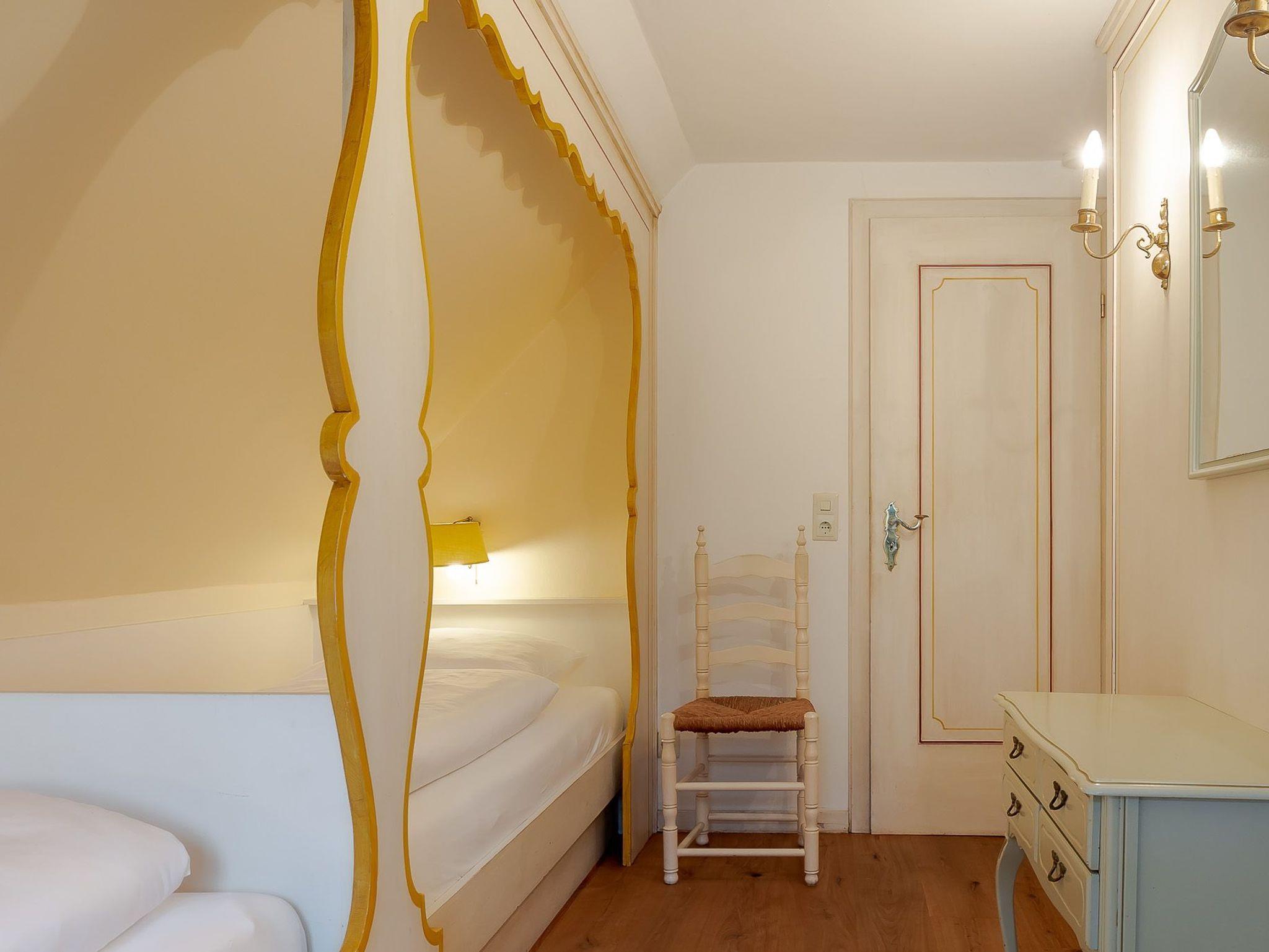 Auf zwei Etagen bietet unsere Ferienwohnung alles, was das Herz von vier Personen begehrt. Der rosafarbene Flur, die hellgelbe Decke und die 50 Jahre alten handbemalten Wandmalereien bieten den perfekten Mix aus Alt und Neu. Die farbenfrohe Einrichtung, verbunden mit dem alten Charme, sorgt für einen gemütlichen Aufenthalt. Auf der unteren Etage befindet sich ein geräumiges Bad mit Dusche, eine kleine Küche und der Wohnbereich. Dieser lädt mit seiner wohnlichen Atmosphäre zu gemeinsamen Stunden am Tisch oder auf der gemütlichen Sofalandschaft ein. Die obere Etage verfügt über zwei Schlafzimmer mit jeweils zwei Alkoven-Einzelbetten und ein weiteres WC.