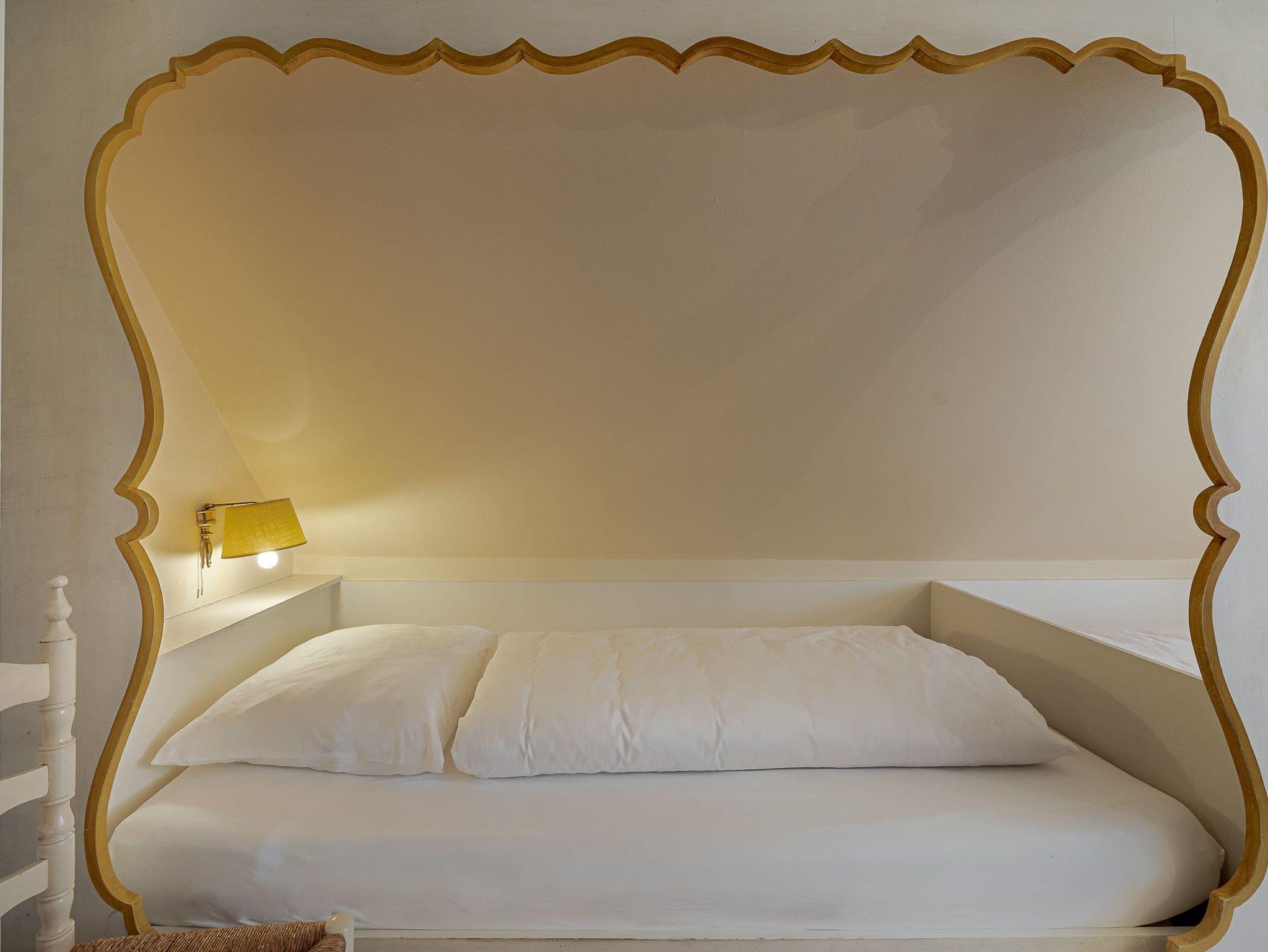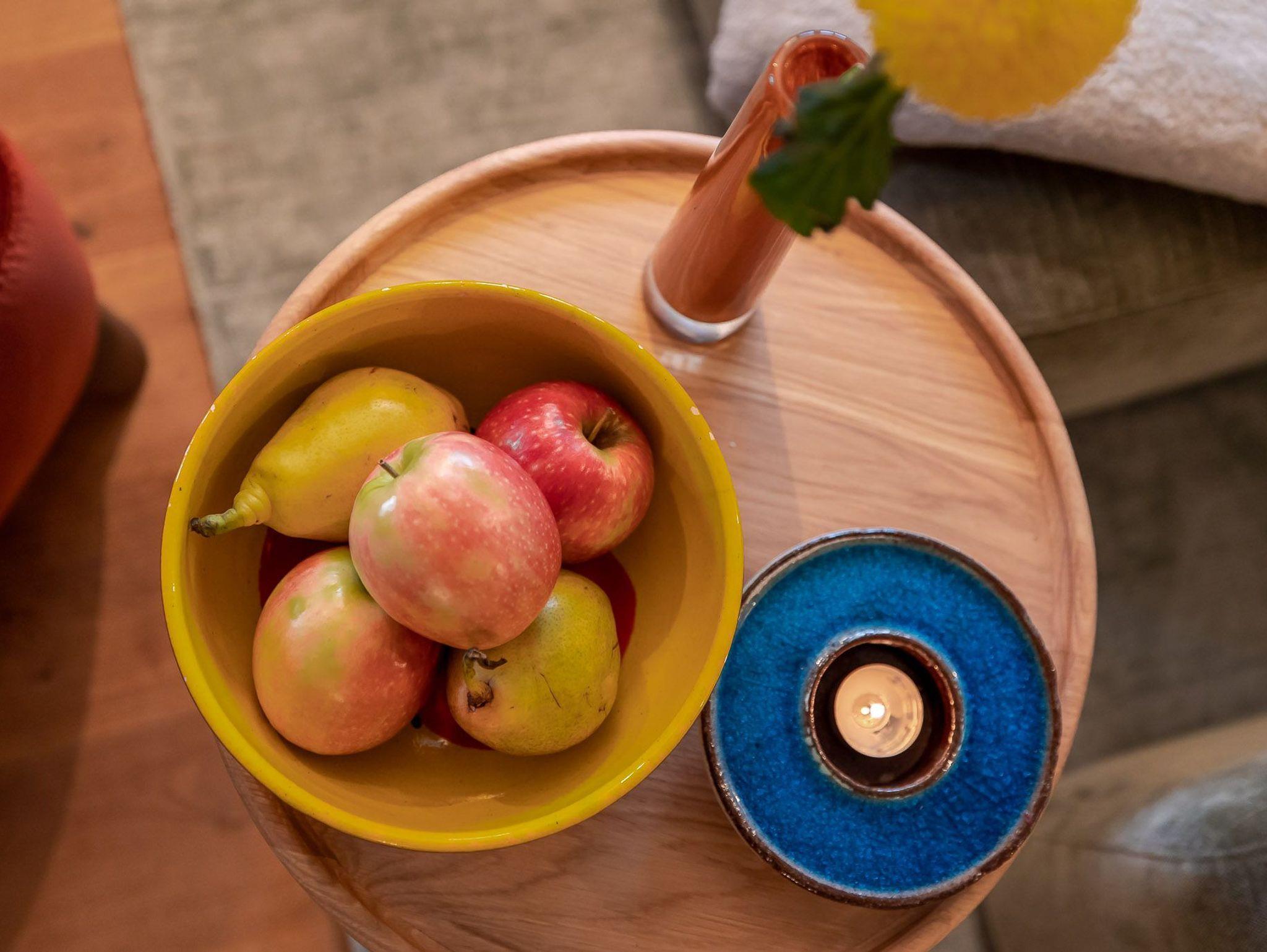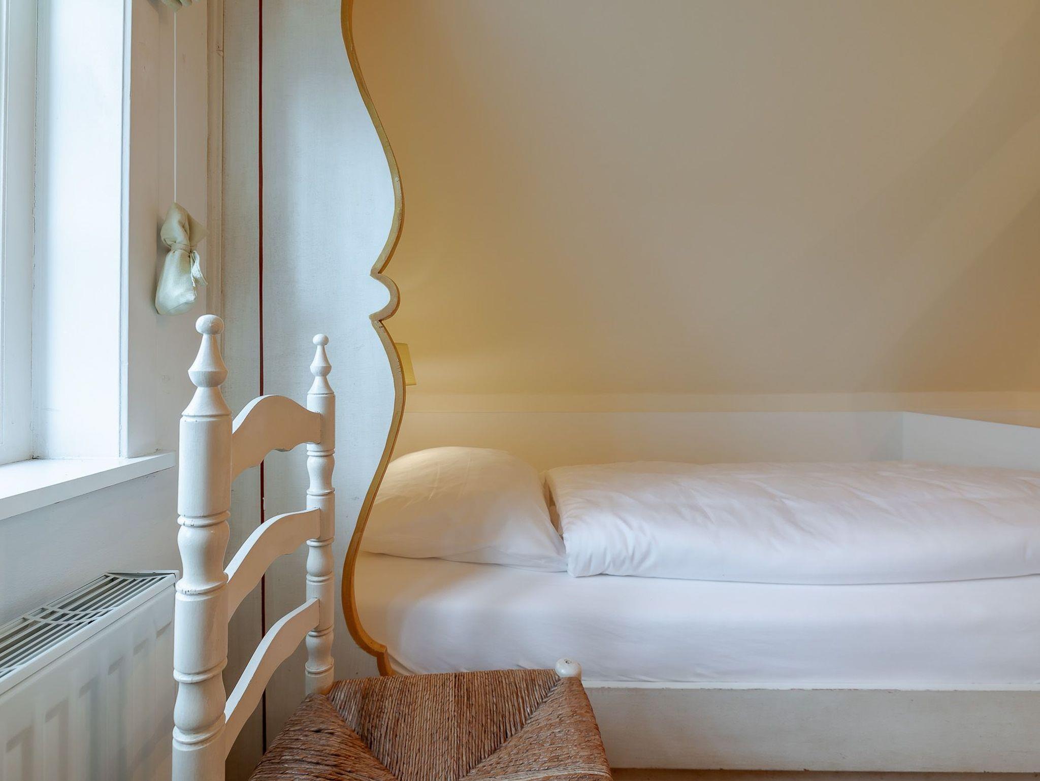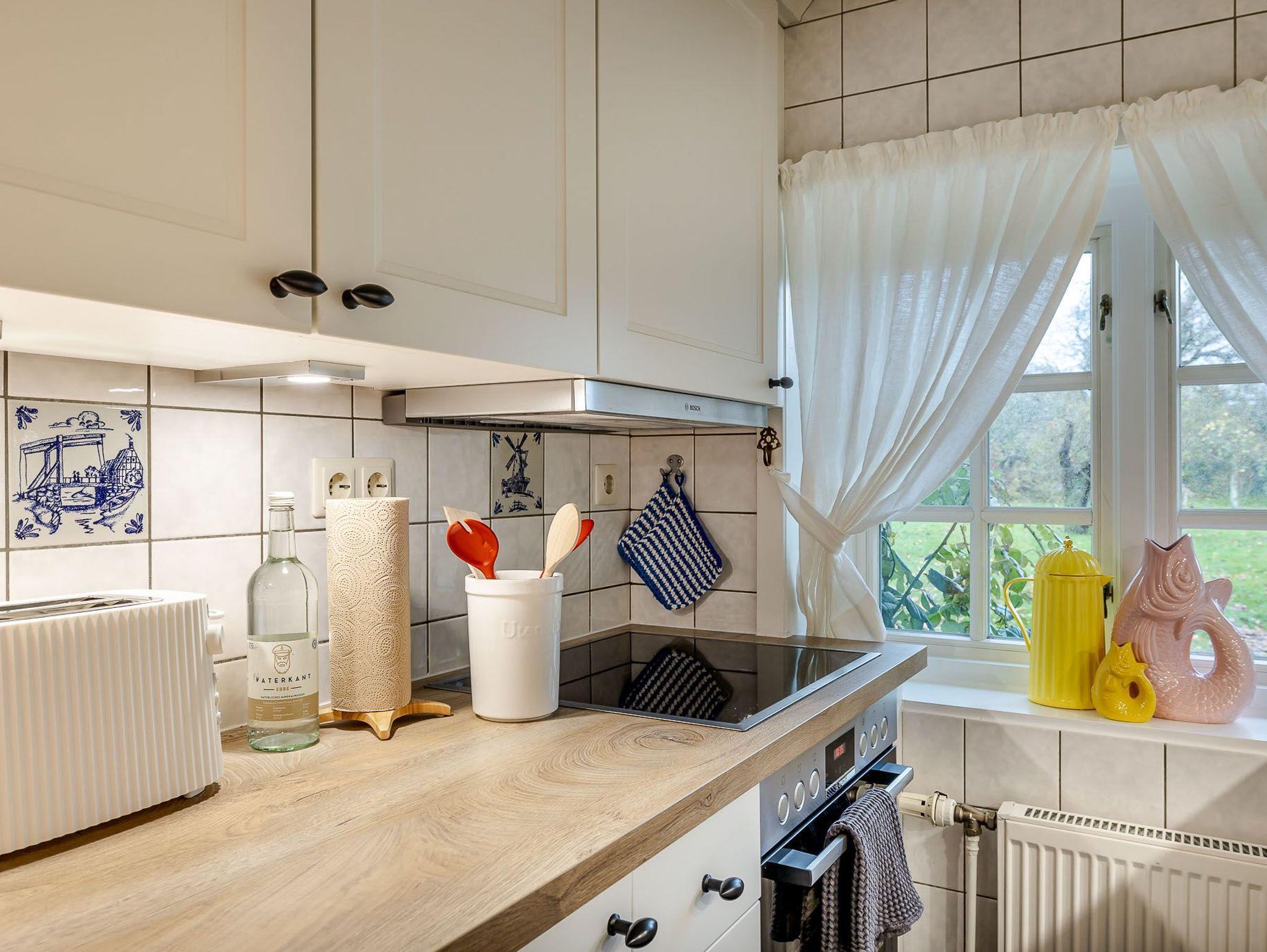 Auf zwei Etagen bietet unsere Ferienwohnung alles, was das Herz von vier Personen begehrt. Der rosafarbene Flur, die hellgelbe Decke und die 50 Jahre alten handbemalten Wandmalereien bieten den perfekten Mix aus Alt und Neu. Die farbenfrohe Einrichtung, verbunden mit dem alten Charme, sorgt für einen gemütlichen Aufenthalt. Auf der unteren Etage befindet sich ein geräumiges Bad mit Dusche, eine kleine Küche und der Wohnbereich. Dieser lädt mit seiner wohnlichen Atmosphäre zu gemeinsamen Stunden am Tisch oder auf der gemütlichen Sofalandschaft ein. Die obere Etage verfügt über zwei Schlafzimmer mit jeweils zwei Alkoven-Einzelbetten und ein weiteres WC.