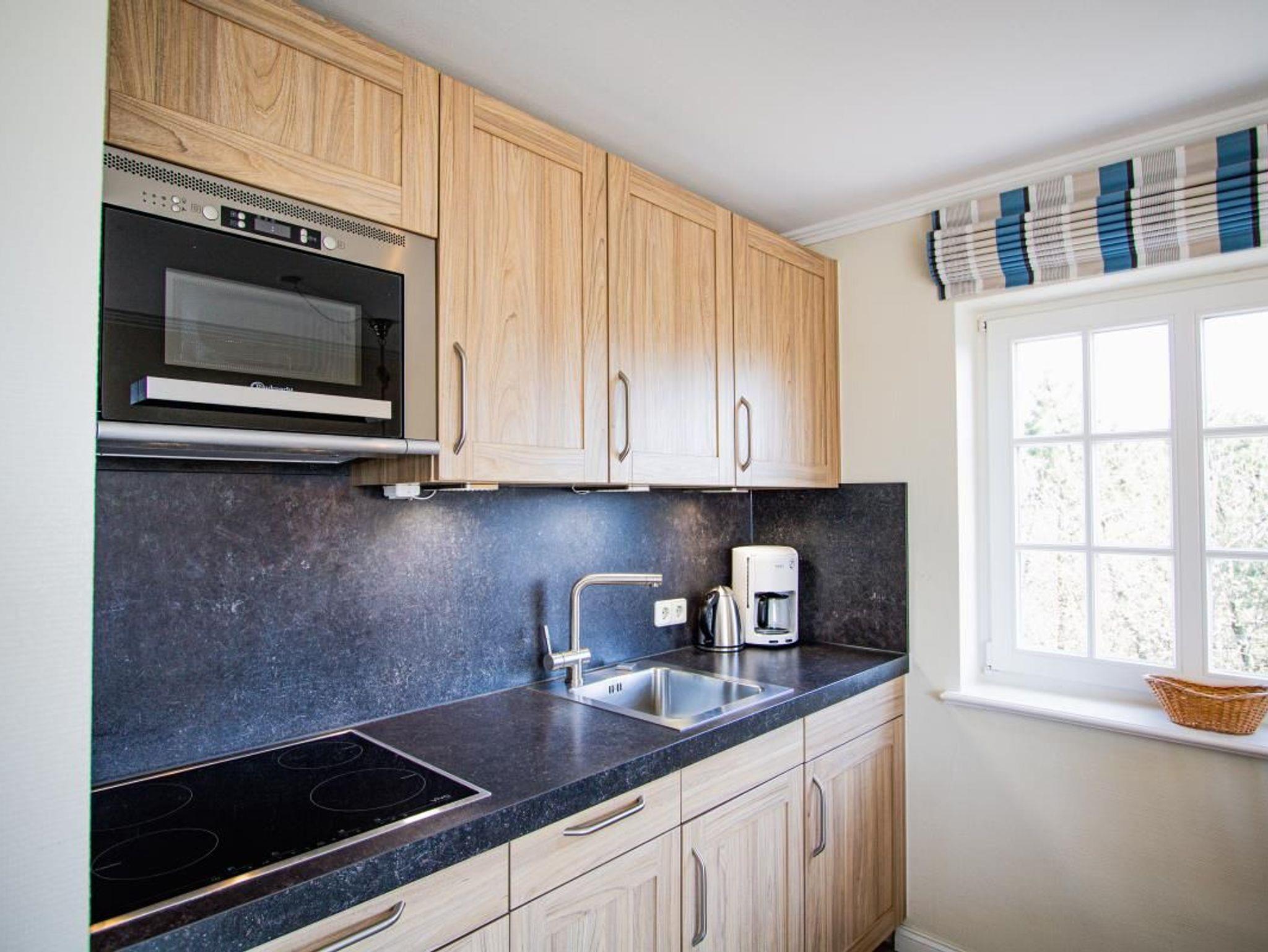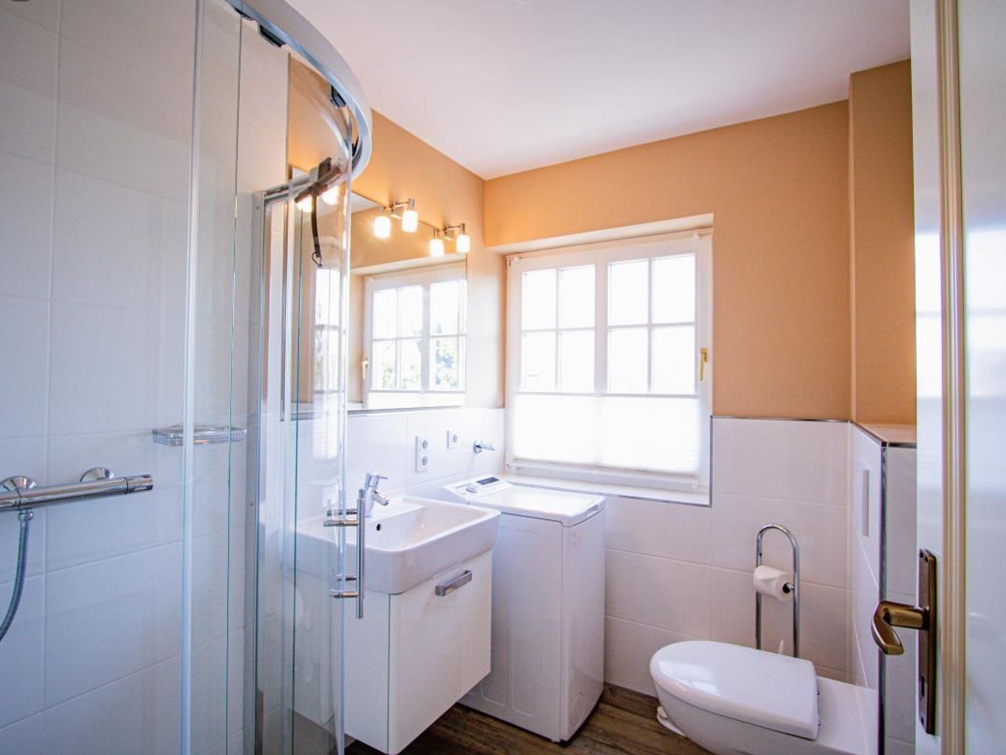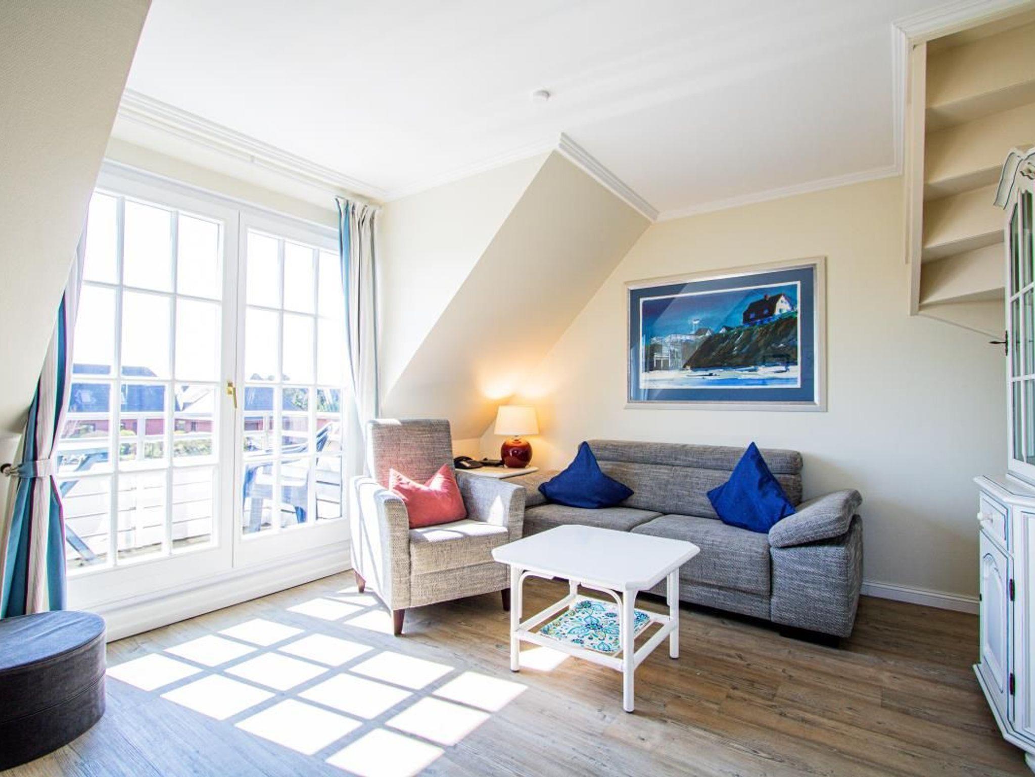 Das exclusive Obergeschoss Appartement liegt in einer Sackgasse, nur wenige Minuten bis zum Strand. Im OG der Wohn/Essbereich mit angrenzender Küchenzeile, ein neues Duschbad/WC und ein Doppelschlafzimmer. Ein weiterer Schlafzimmer mit 2 Einzelbetten ist im Dachgeschoss. Das Appartement hat Kabel-TV, Mini Anlage bzw. Radio,W-Lan, Geschirrspüler,einen Balkon zum Süden mit Gartenmöbeln, sowie eigene Sonnenkule mit Strandkorb,geschützt gelegen hinter dem Haus.