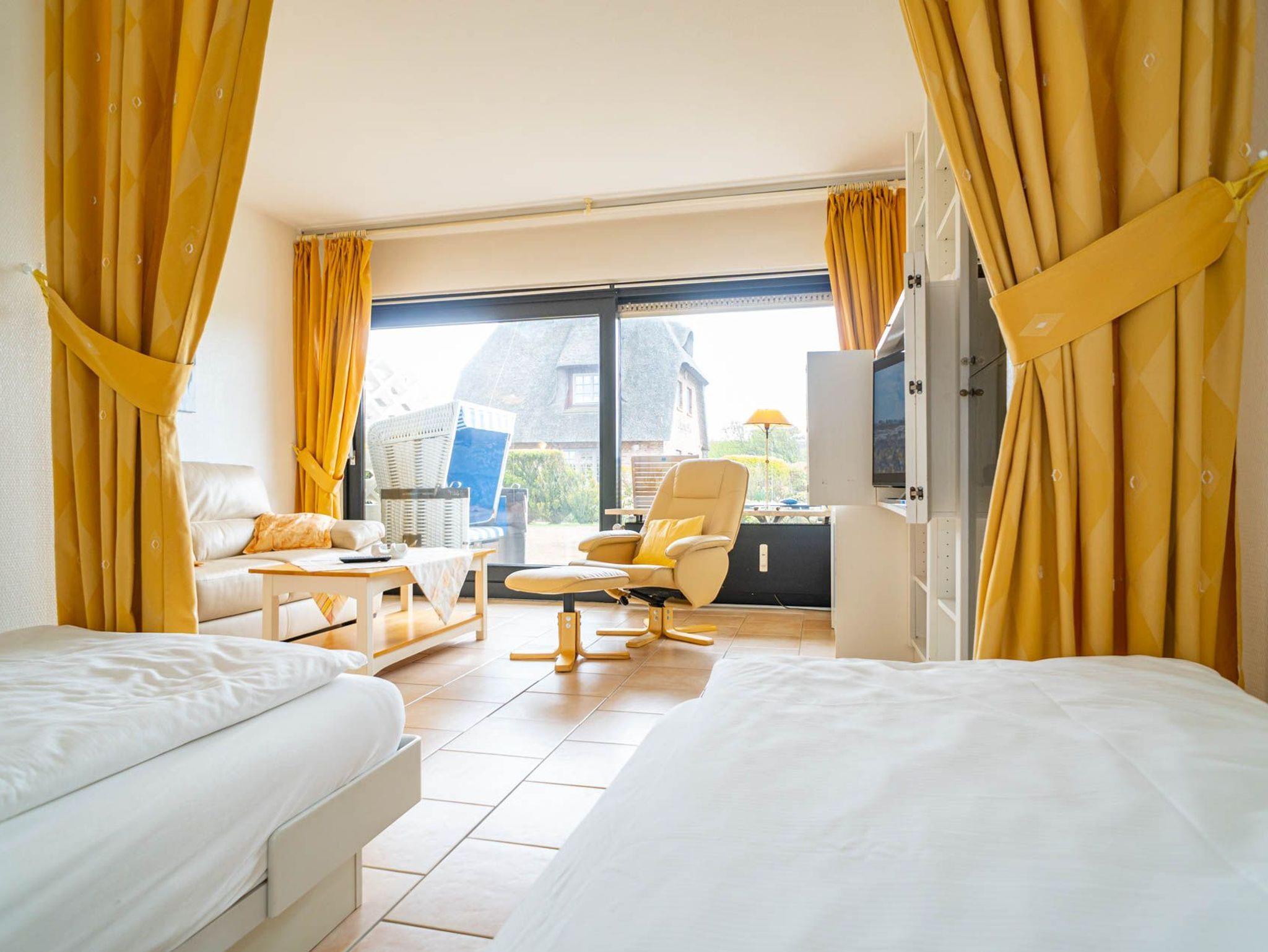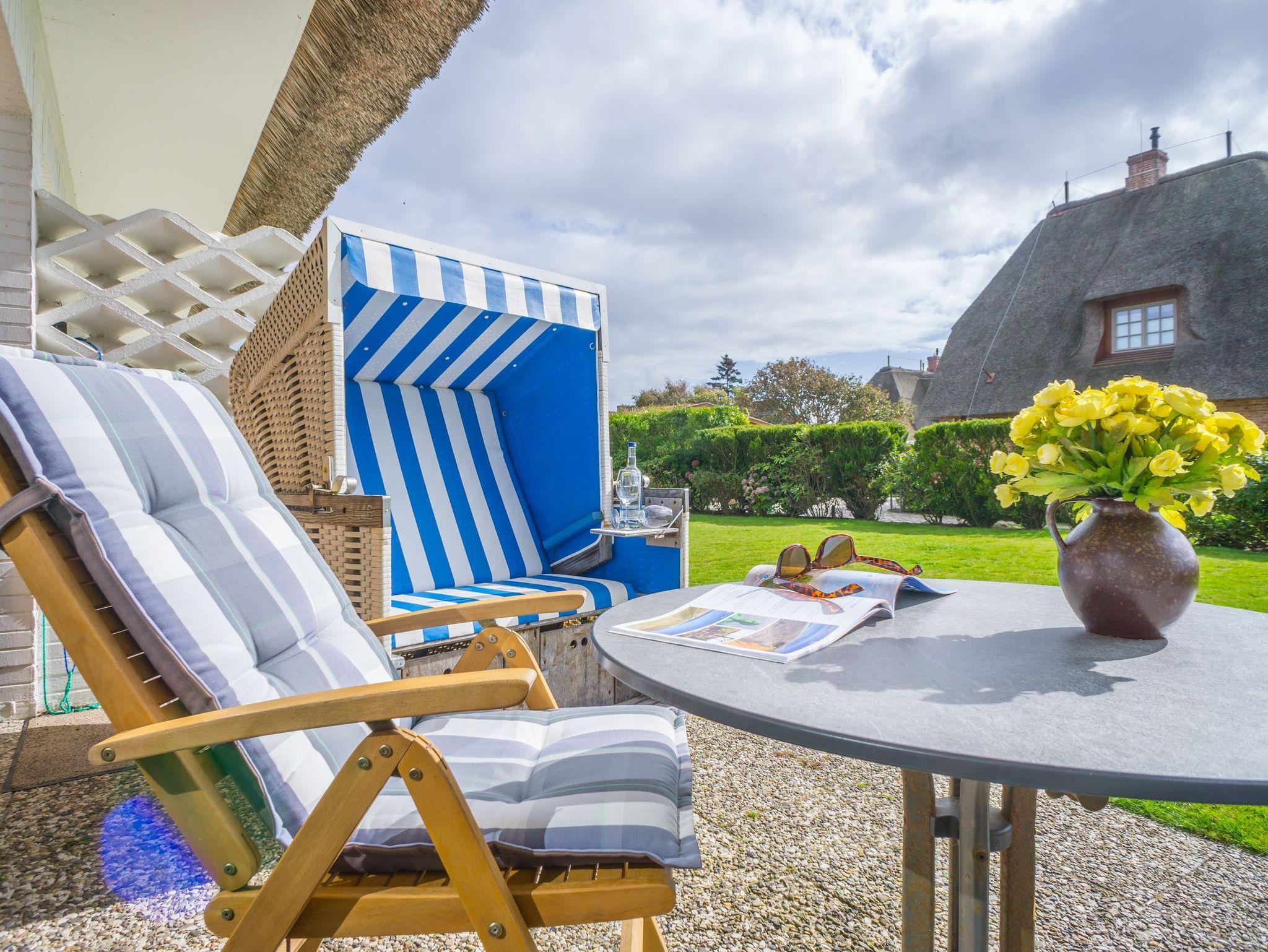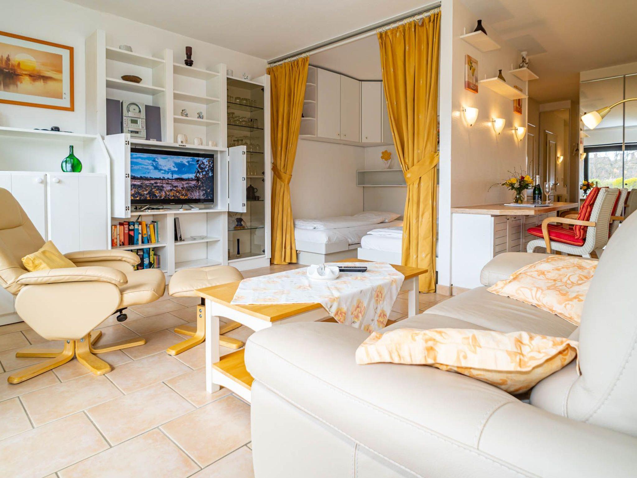 Gemütliche 1,5 Zimmer-Nichtraucher-Ferienwohnung, ca. 40 qm im Parterre zur Südseite mit Südterrasse und Gartenanteil (Strandkorb, Terrassenmöbel mit Auflagen) für max. 2 Personen.