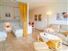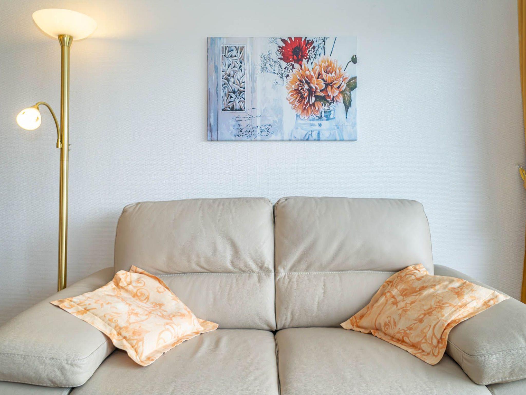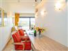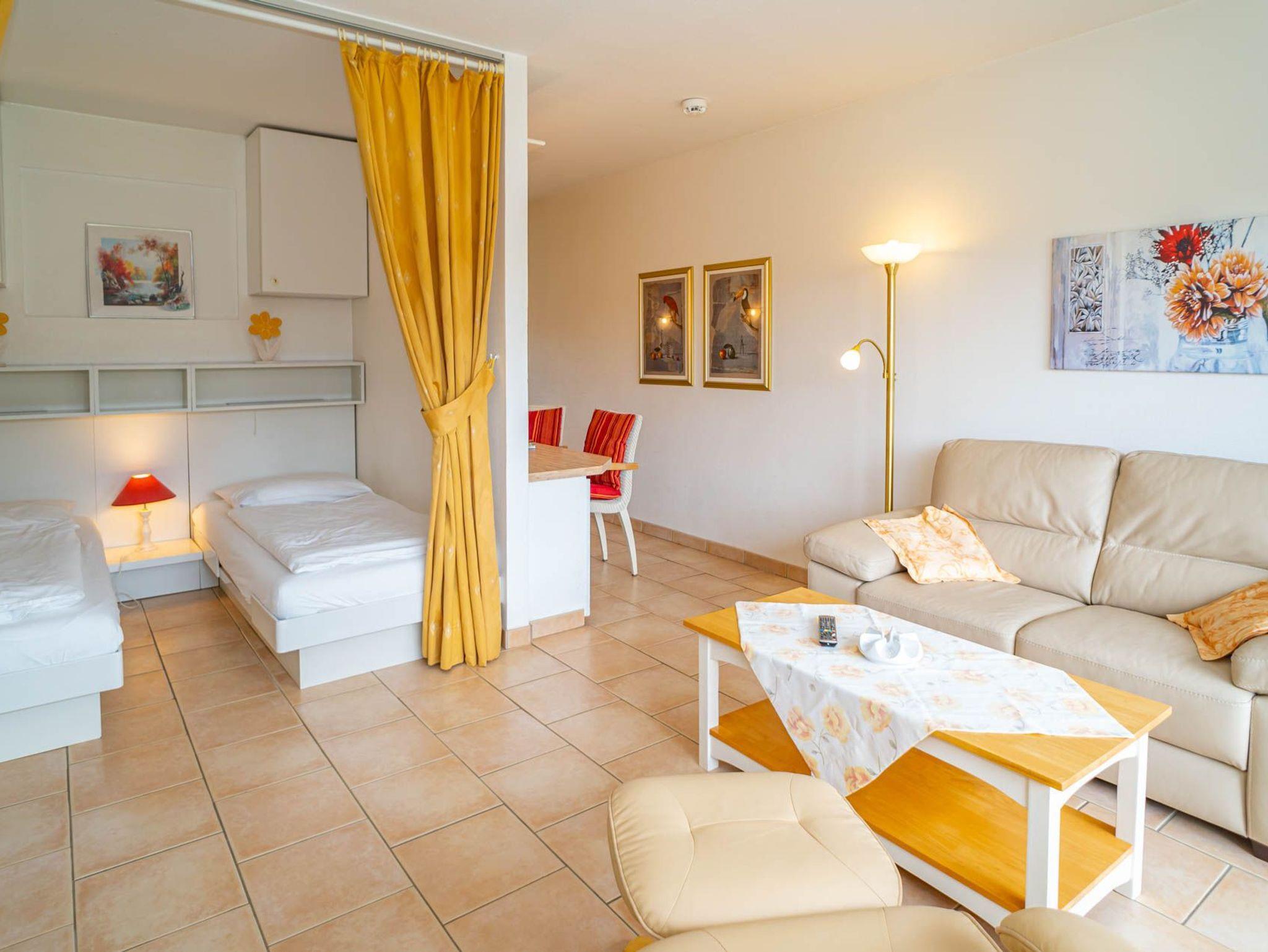 Das Wohnzimmer besteht aus einer Sitzgarnitur (Zweisitzer-Couch, 1 Sessel), einem Essplatz, Kabel-TV, Telefon, W-Lan (ohne Gewähr).