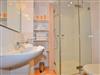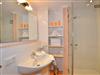 Im Bad befinden sich eine Dusche, ein WC und ein Waschtisch.