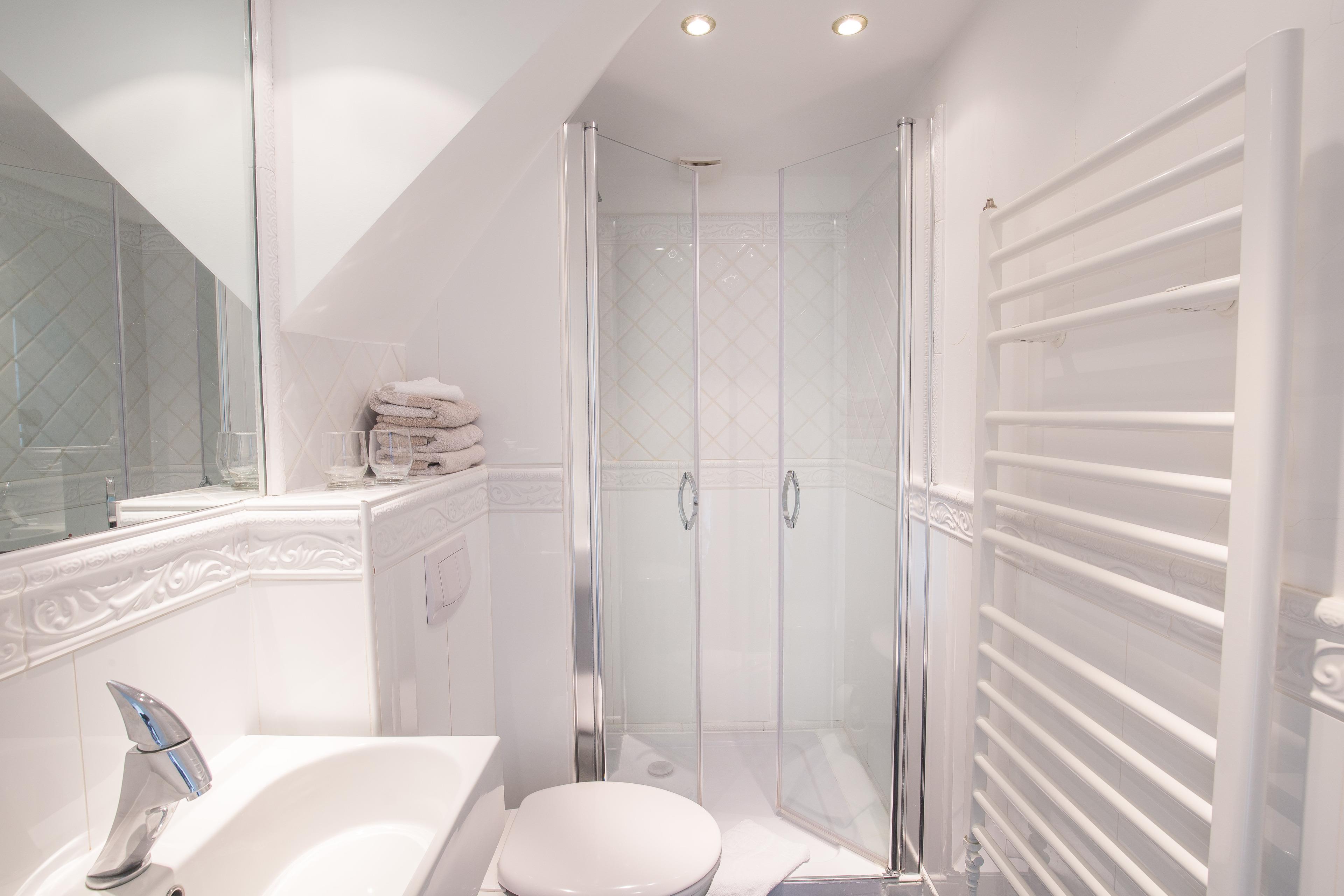 Auf der gleichen Ebene gibt es ein modernes Duschbad.