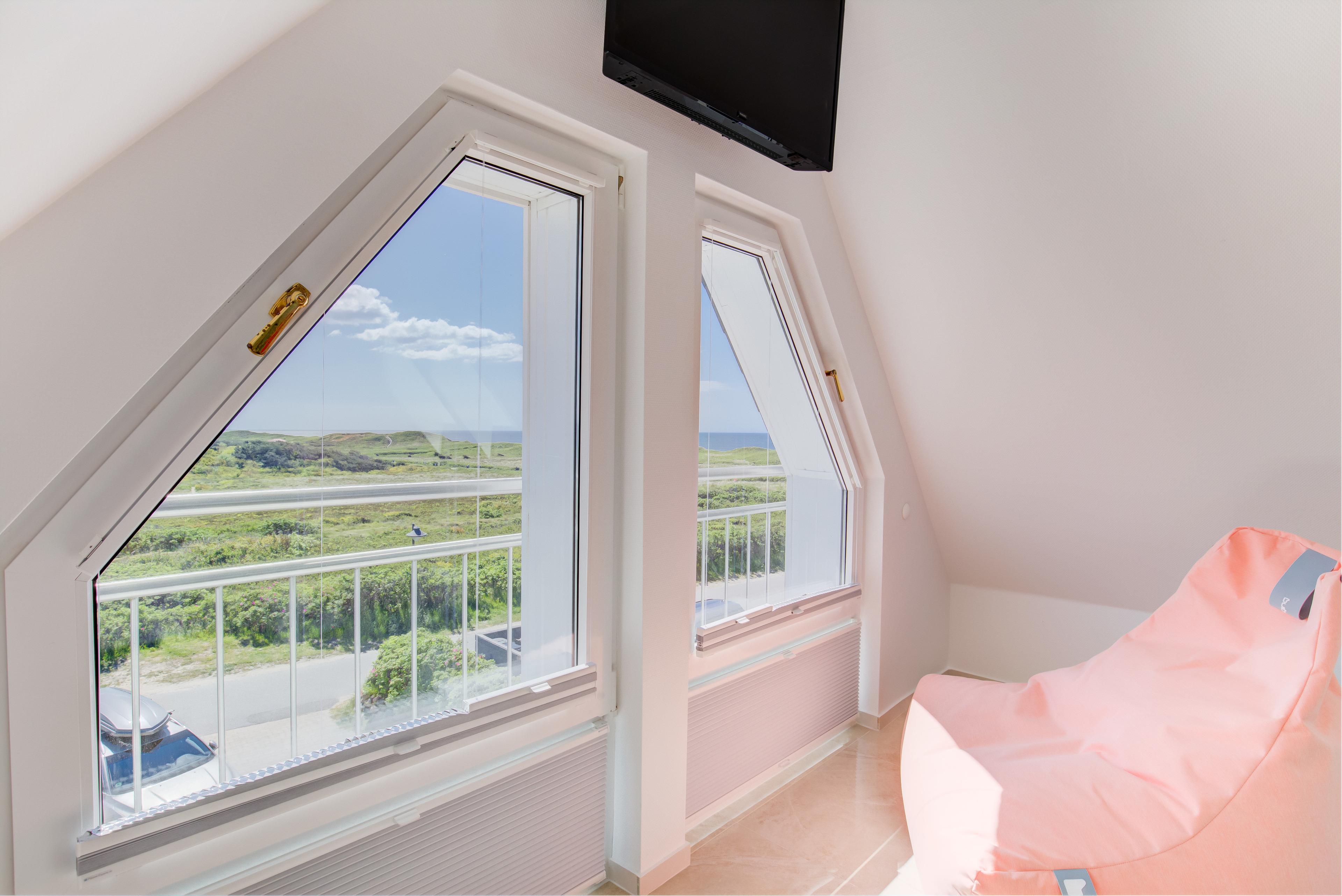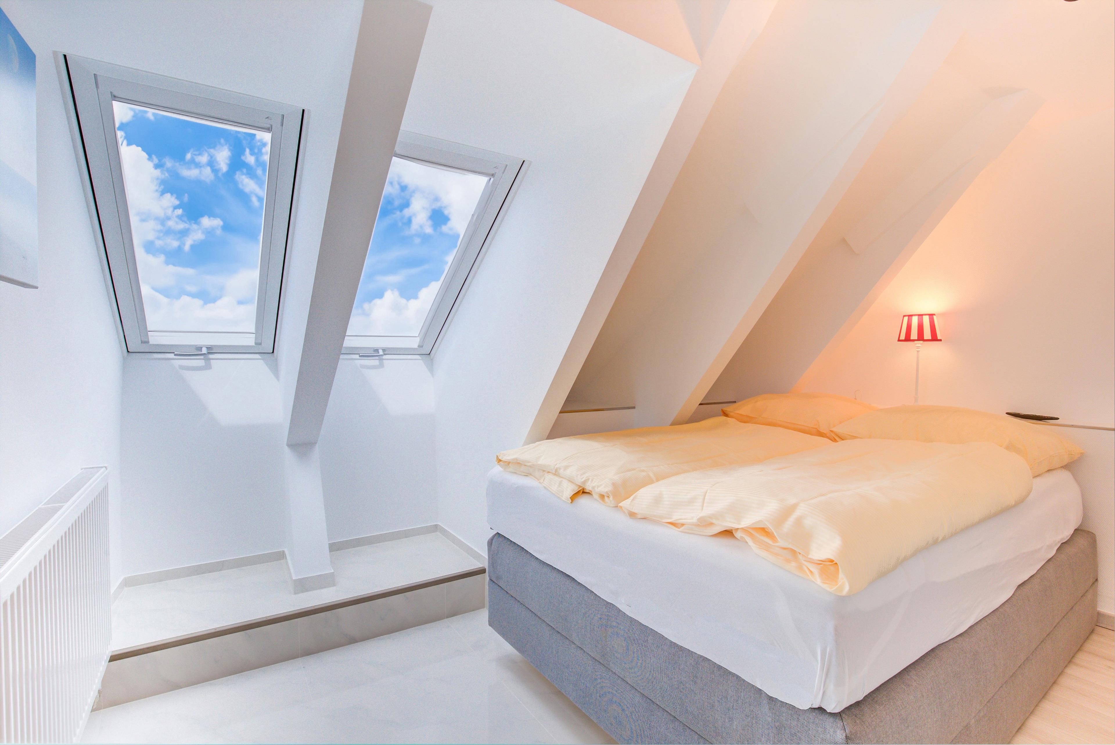 Einbauschränken für Ihre Urlaubsgarderobe sowie 2 Duschbäder befinden sich ebenfalls auf dieser Ebene. In dem darüber liegenden Dachgeschoss befinden sich zwei weitere Schlafzimmer mit einem tollen Ausblick über das Meer und die Heide.