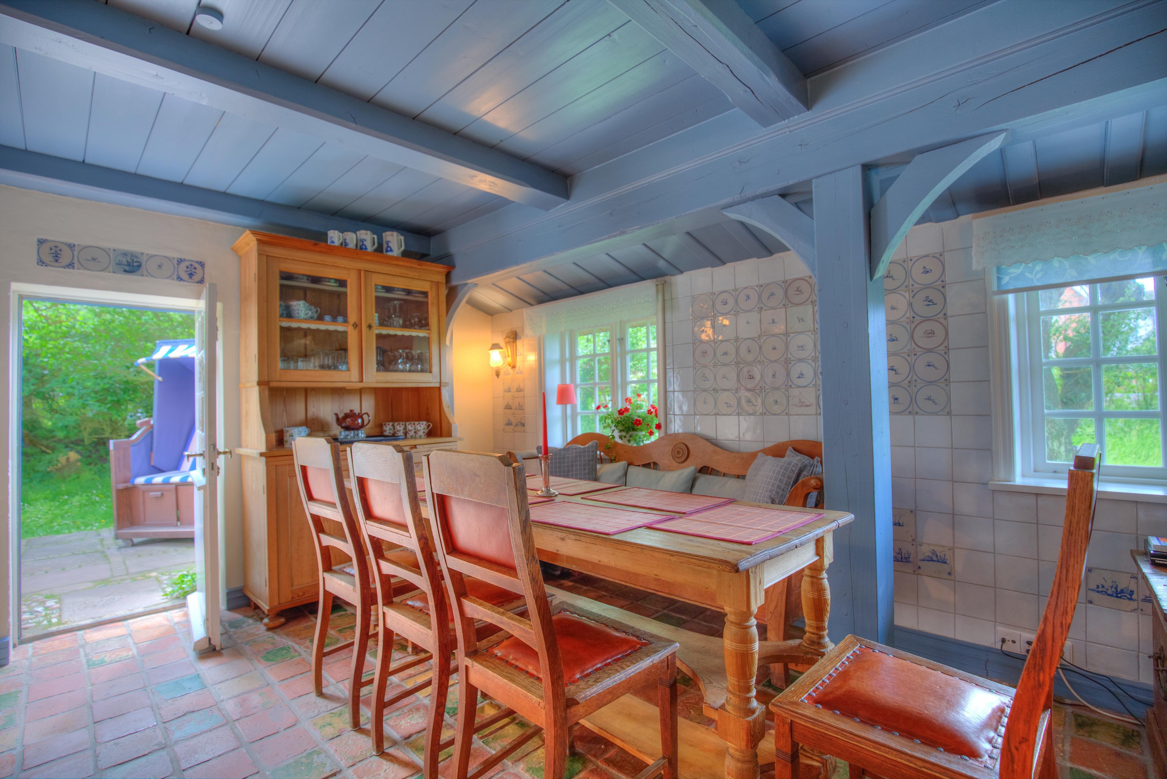 Stilecht urlauben unter Reet in dieser 110m² großen 5 Zimmer-Ferienwohnung im friesischen Stil, 4 Schlafzimmern und 3 Bädern mit großem Gartenbereich.
