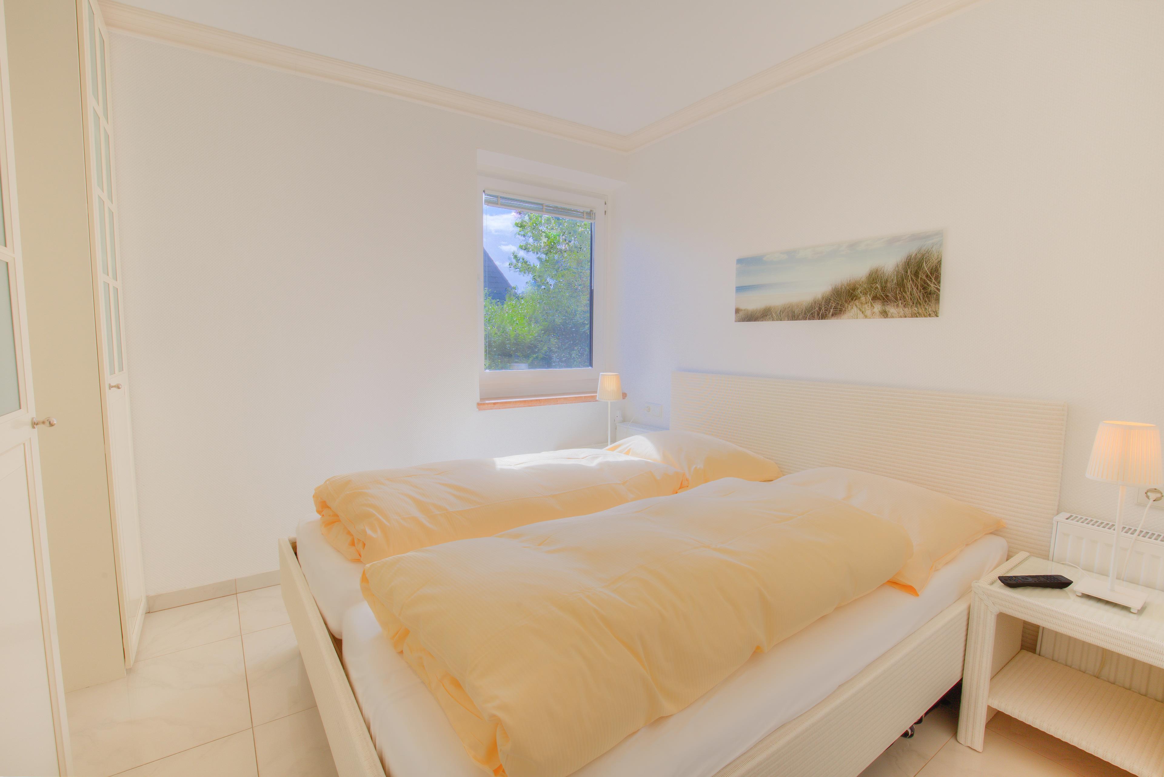 Im gemütlichen Schlafzimmer mit Doppelbett und Fernseher schlafen Sie wohl.
