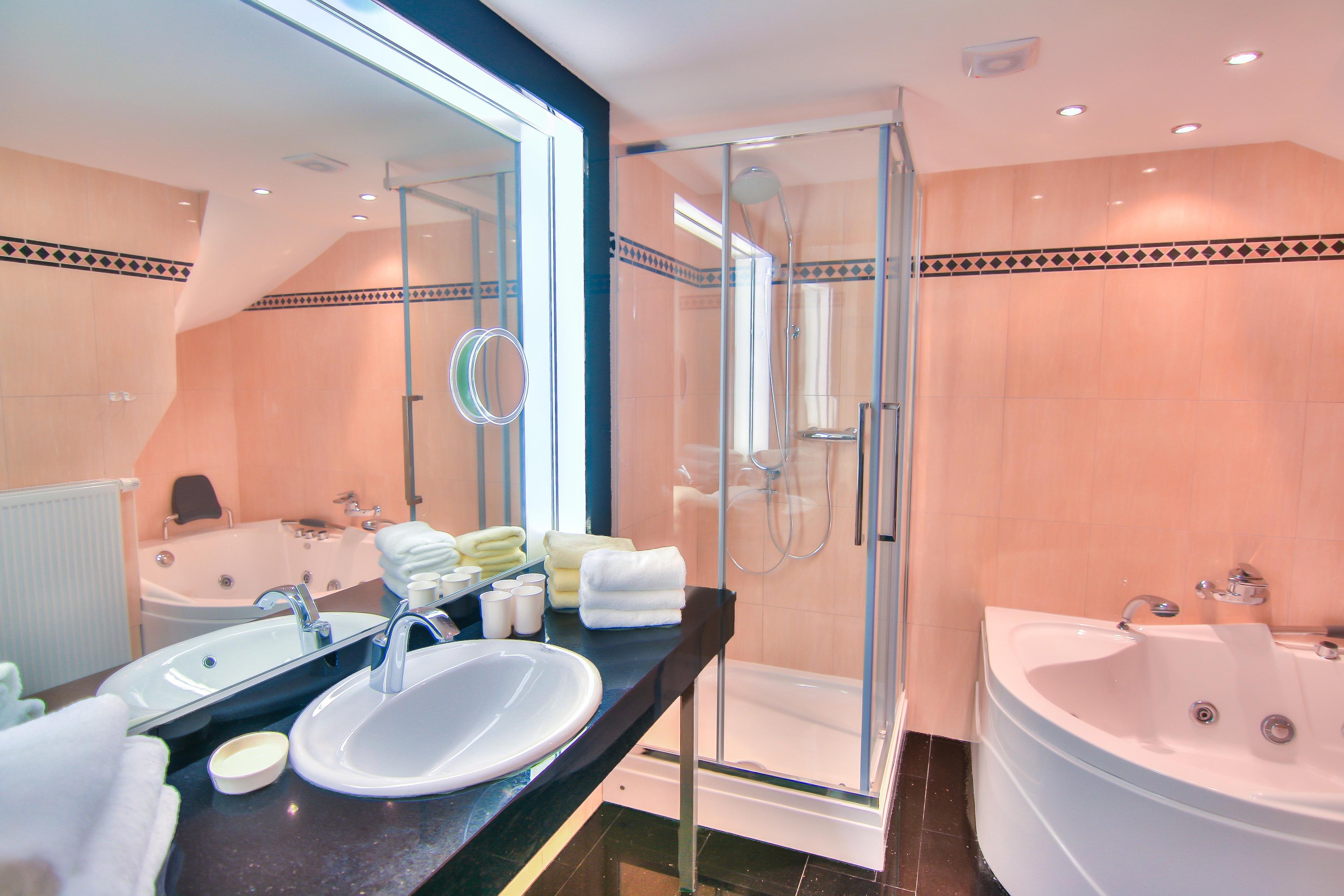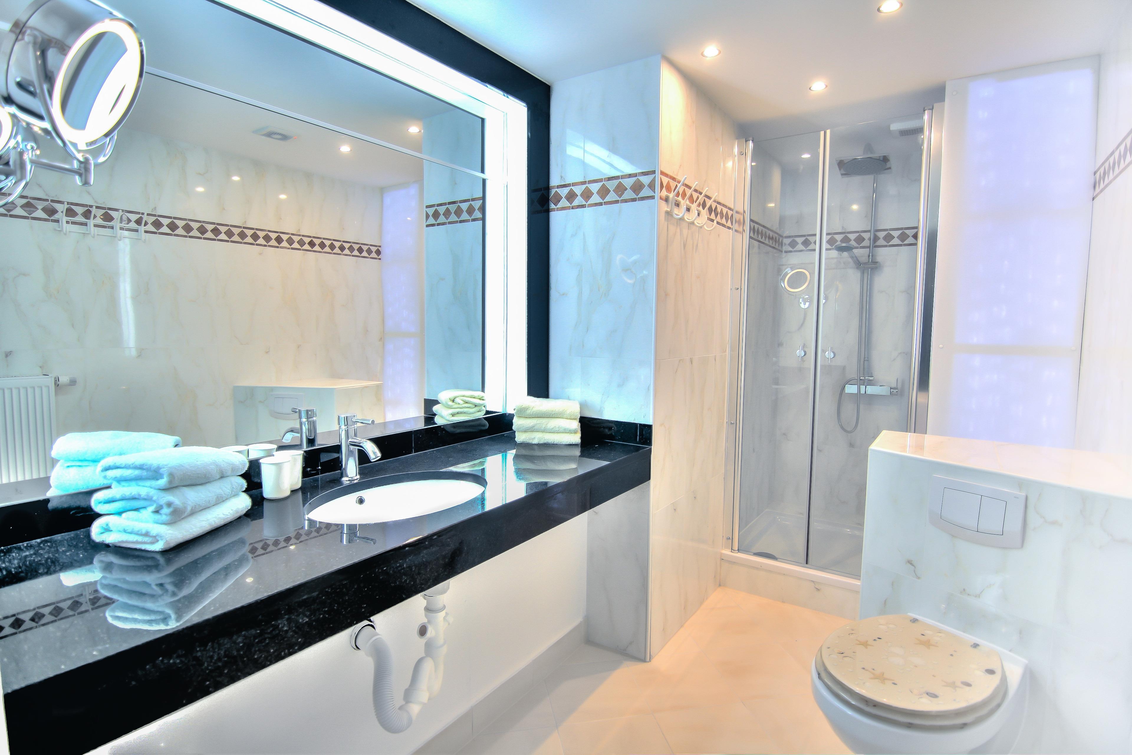 Komfortfaciliteter på badeværelset (hårtørrer, shampoo, hårbalsam, håndsæbe og brusegel)