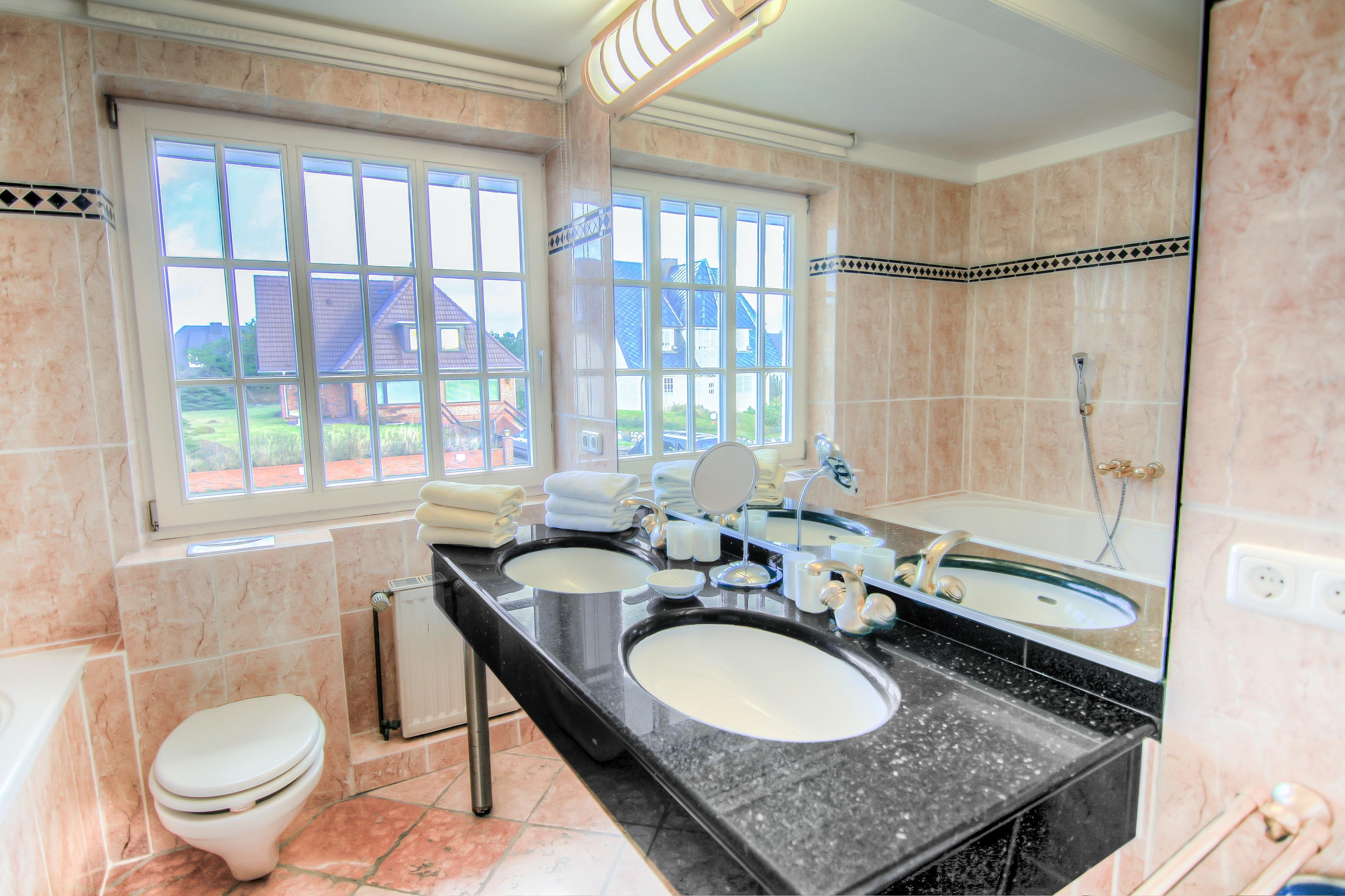 Die Sylter Sonnenstunden genießen Sie auf dem Süd-Westbalkon. Das erste der drei Schlafzimmer, sowie ein Bad mit Whirlpool befinden sich auf dieser Ebene.