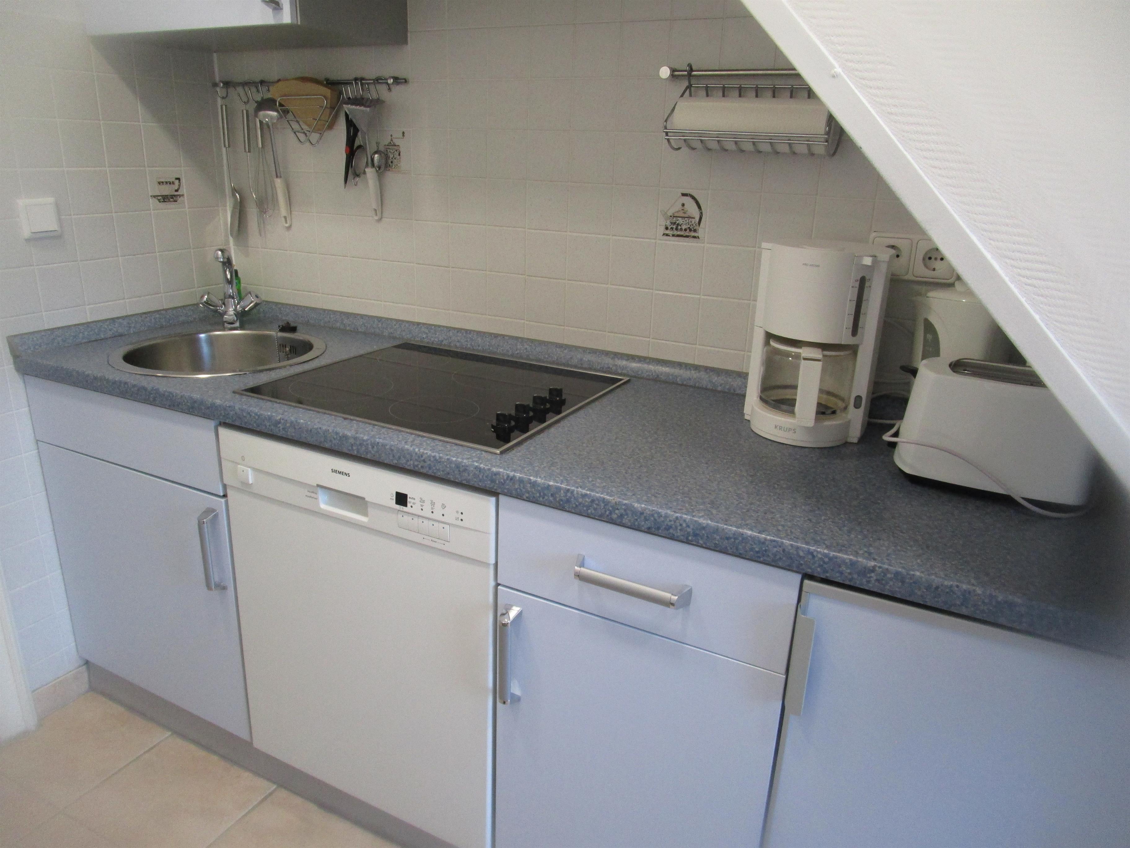 Die Ferienwohnung für 2 Personen befindet sich in einen kleinen Häuschen mit nur 2 Ferienwohnungen. ( Kiekin-Kiekut). Im EG befindet sich der Wohnraum, das Bad mit WC, sowie im Flur die Küchenzeile.. Im OG ist der Schlafraum mit Fernseher. Die Küchenzeile ist komplett ausgestattet wie Geschirrspüler, Kaffeemaschine, Toaster , Wasserkocher usw. Die Wohnung hat einen eigenen Eingang . Zur eigenen Terrasse gehören Gartenmöbel und der Strandkorb.