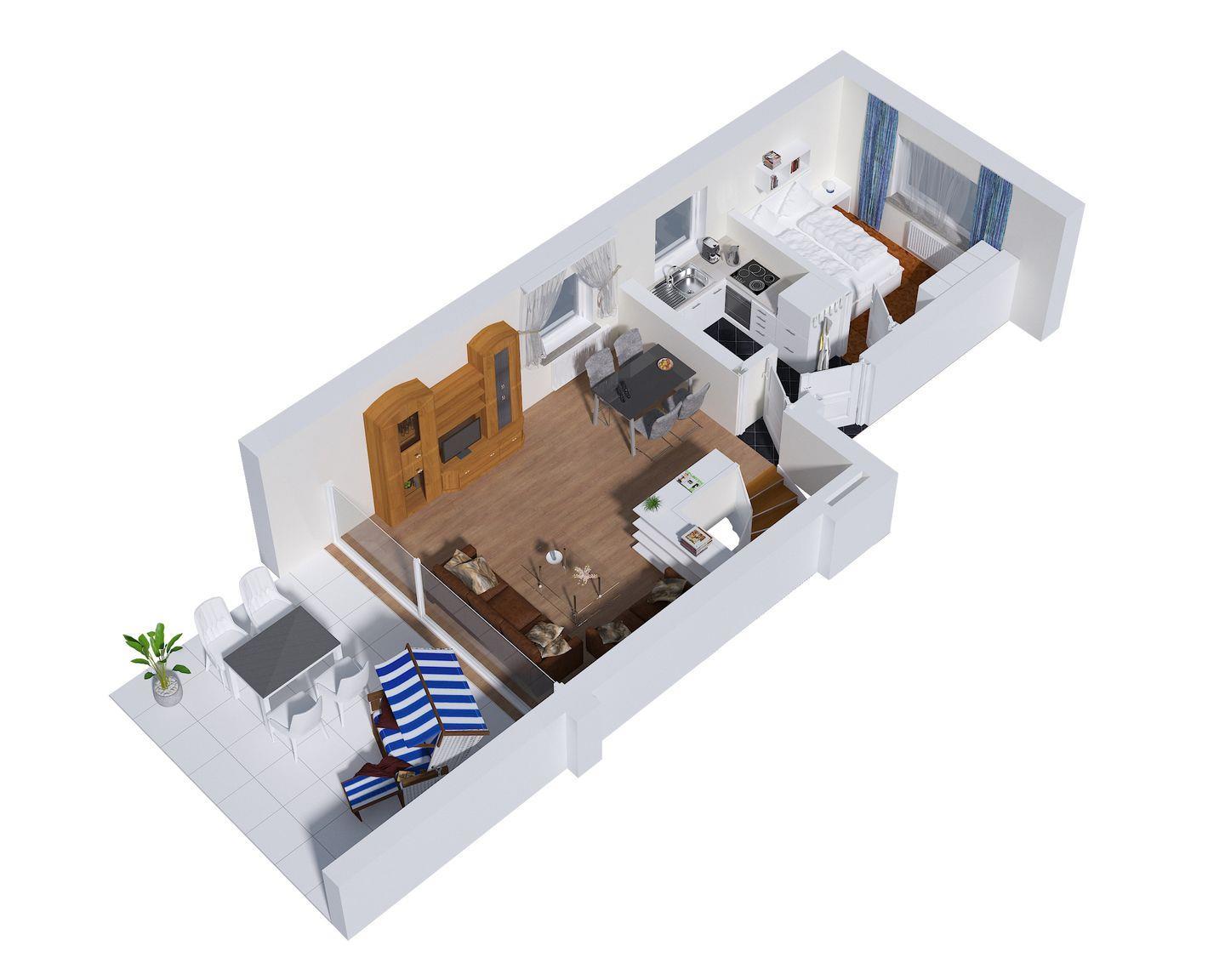 Diese gemütliche ca. 67 m² große Ferienwohnung für bis zu 4 Personen verläuft über zwei Ebenen und befindet sich in einer strandnahen Lage Wenningstedts. "Risgap" bietet Ihnen ein liebevoll eingerichtetes Wohn- und Esszimmer mit direktem Zugang zur schönen Südterrasse samt Strandkorb (in der Saison) sowie angrenzendem Gemeinschaftsgarten. Die separate, moderne Küche samt Geschirrspüler ist voll ausgestattet. Im Erdgeschoss steht Ihnen ein Schlafzimmer mit einem Doppelbett (140x200 cm) zur Verfügung. Über eine Treppe vom Wohnbereich gelangen Sie runter ins Souterrain. Dort befindet sich ein weiteres Doppelschlafzimmer (200x200 cm) sowie ein Duschbad. Kostenloses WLAN und ein zugehöriger PKW-Stellplatz sind vorhanden. Haustiere sind leider nicht gestattet.