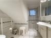 Badezimmer: Helles Duschbad mit WC, elektrischem Handtuchtrockner, Fussbodenheizung und einem Fenster.