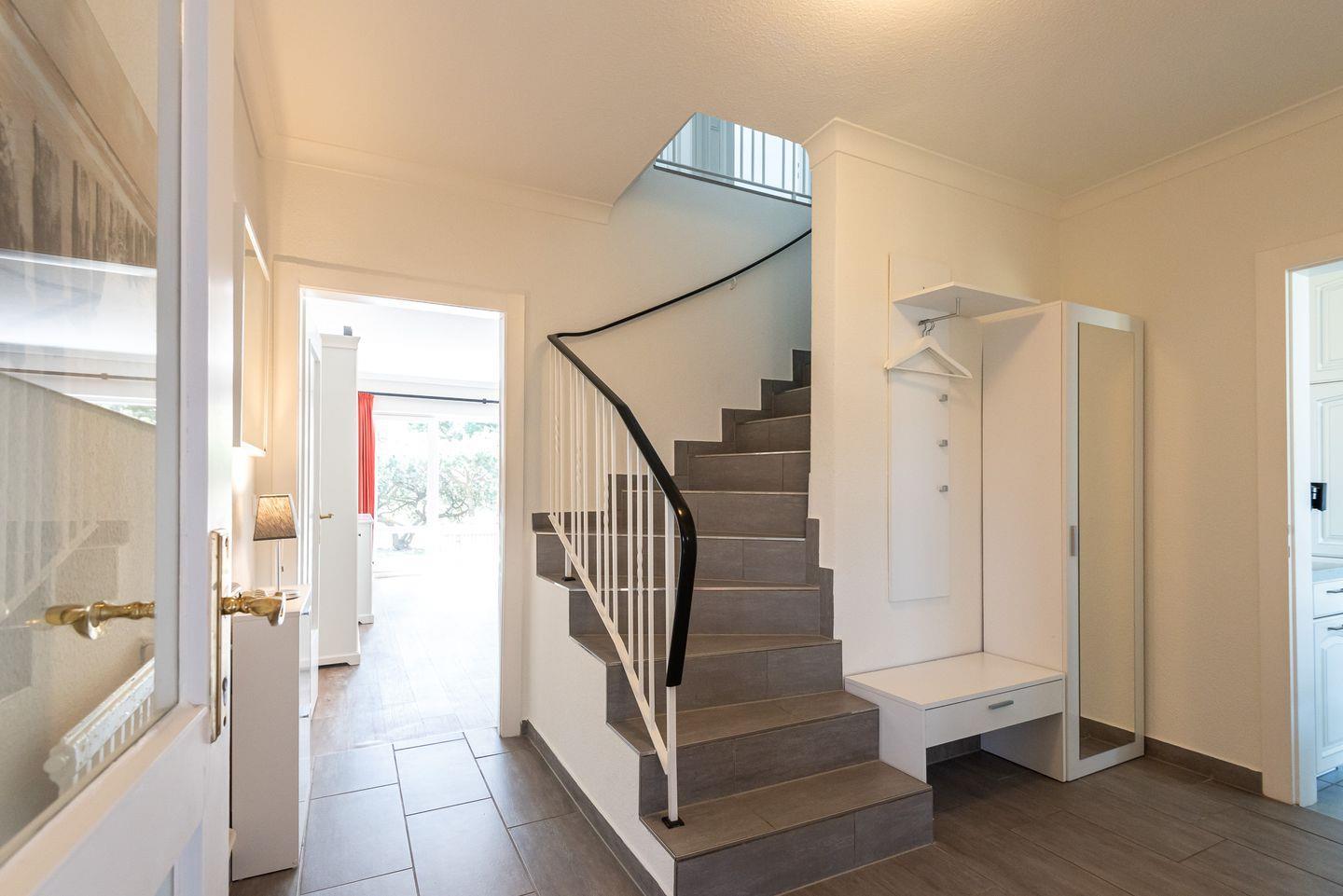 Wohn- und Essbereich: Der geräumige Wohnbereich mit Essecke, gemütlicher Sitzgarnitur und TV laden zum langen Verweilen ein. Freuen Sie sich auf die angrenzende große Terrasse, sowie den herrlichen Garten nach Süd-Westen, der mit schönen Gartenmöbeln und einem Strandkorb ausgestattet wurde.