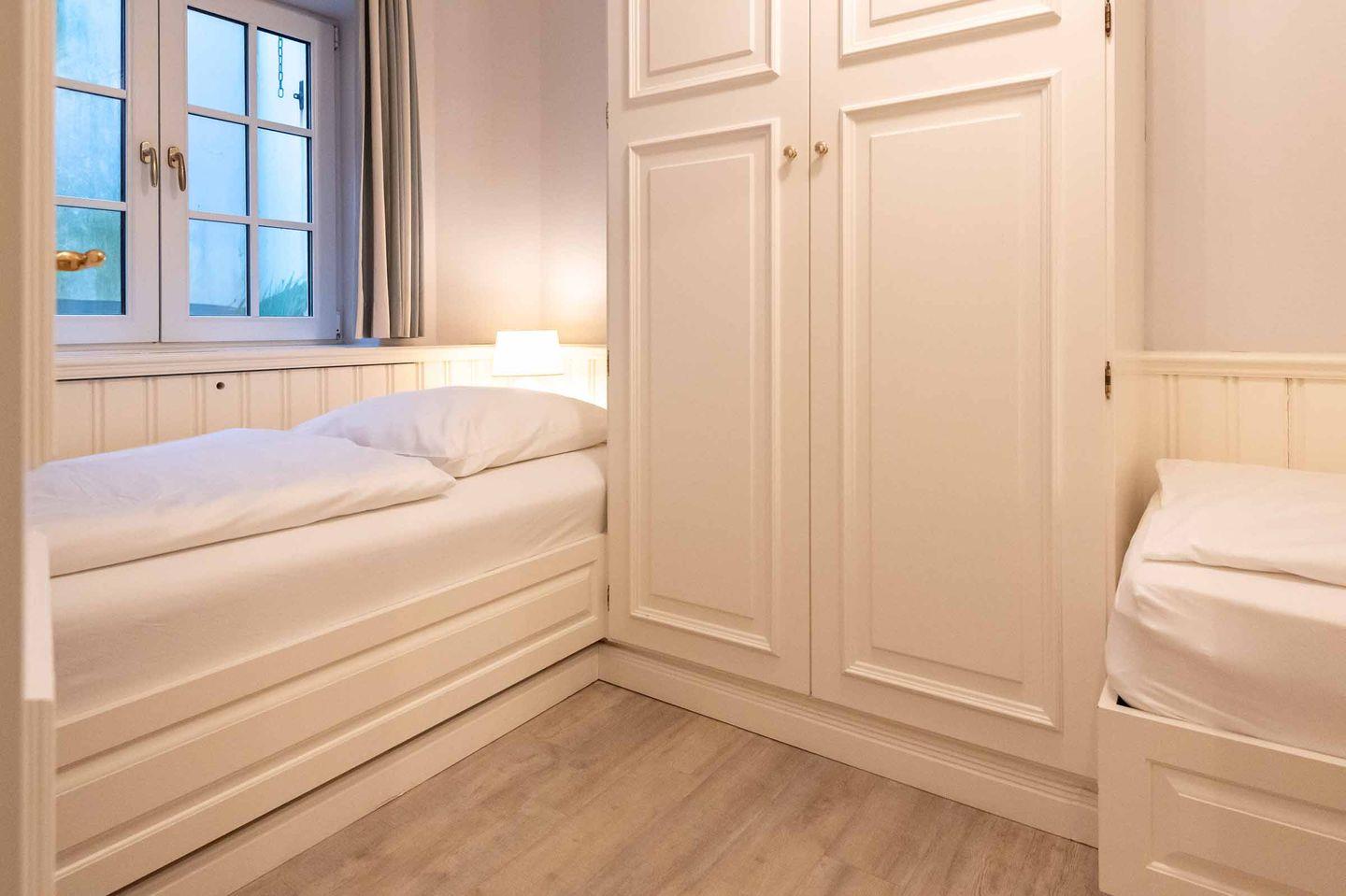 Schlafzimmer 2: Geräumiger Schlafraum mit zwei Einzelbetten, wunderschöner Malerei im Fenster-Bereich und TV.