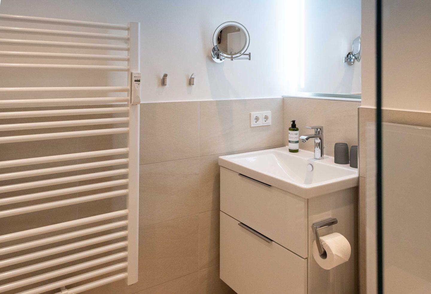 Hell und gemütlich gestaltete Ferienwohnung in ruhiger Wohnanlage mit viel Raumangebot. Alle Badezimmer sind neu und mit bodentiefen Duschen ausgestattet, eines der Badezimmer verfügt über eine Dampfdusche.