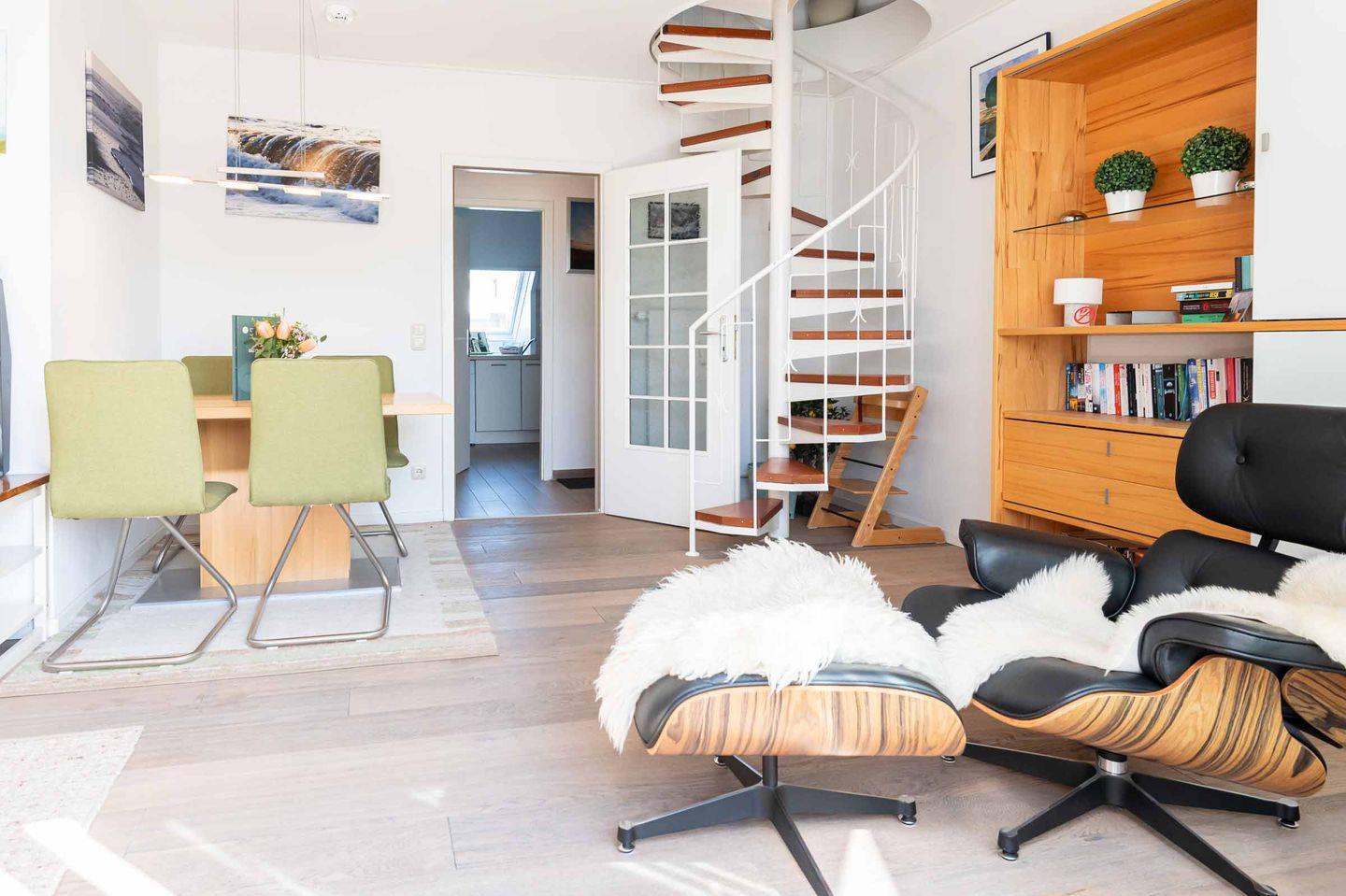 Diese Maisonette-Ferienwohnung liegt in einer ruhigen Wohnanlage und ist modern und zugleich gemütlich gestaltet.