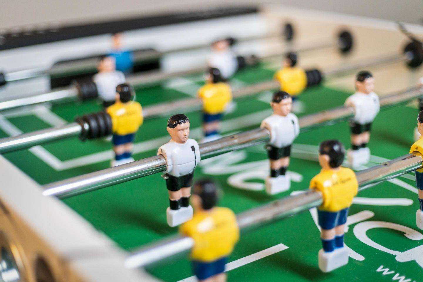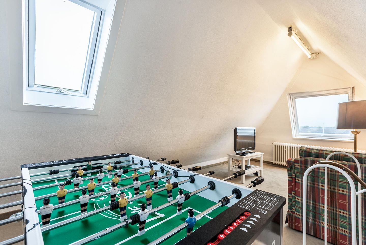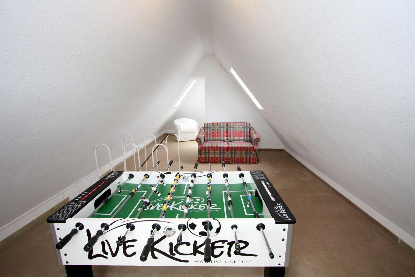Ausgebauter Spitzboden u.a. mit einem Fußball-Kicker und einer Fernsehecke.