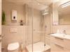 Badezimmer: Helles, modernes Duschbad mit großzügiger Duschkabine. Ein Handtuchtrockner und ein beleuchteter Kosmetikspiegel stehen ebenfalls zur Verfügung.