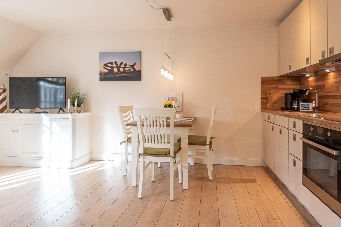 Nahe dem idyllischem Dorfteich von Wenningstedt befindet sich dieses schöne Feriendomizil im Ober- und Dachgeschoss. Mit hochwertiger Einrichtung und viel Liebe zum Detail überzeugt diese Wohnung im neuen Zentrum von Wenningstedt.