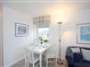 Wohn-/Schlaf-/Esszimmer: Gepflegter Ess- und Wohnbereich mit bequemer Sitzecke, sowie TV und einer gemütliche Essgruppe. Vom Wohnzimmer gelangen Sie direkt auf den möblierten Balkon mit herrlichem Blick auf die Dünen.