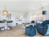 Wohn-/Koch-/Essbereich: Großzügiger, moderner Wohnbereich mit Sofaecke,TV und Schrankbett für 2 Personen sowie einem gemütlichen Essplatz für 4 Personen. Von diesem Raum gelangen Sie auch auf die schöne West-Terrasse.
