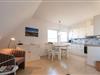 Koch-/Ess-/Wohnbereich: Moderne, helle und geräumige Einbauküche. Von hier aus genießen Sie beim Frühstück den traumhaften Weitblick. Desweiteren finden Sie hier die stilvolle Wohnlandschaft mit TV und direktem Zugang zum Südbalkon mit schönen Gartenmöbeln.