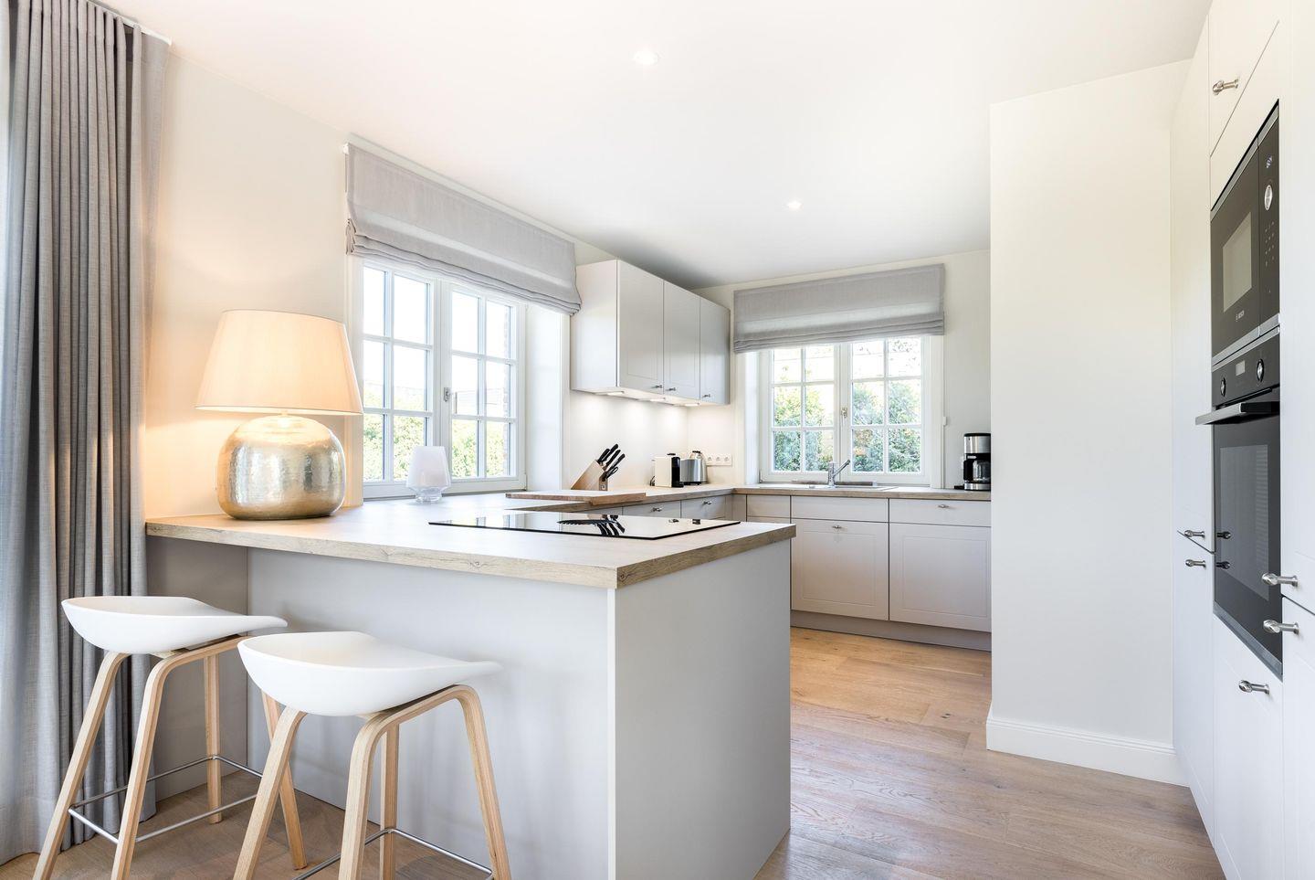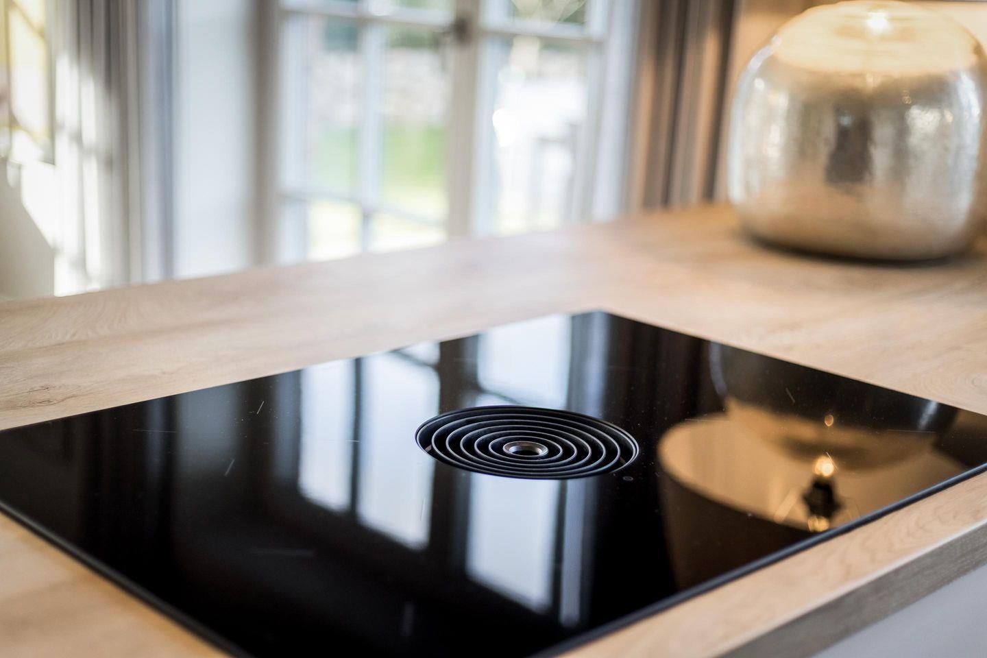 Offene Küche: Moderne und sehr hochwertig ausgestattete Küche mit Bora-Dunstabzug sowie Fenster.