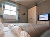 Schlafzimmer 1: Doppelbett (1,60x2,00m) mit TV und Ostfenster.