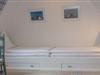 Badezimmer: Modernes Duschbad mit WC, elektrischem Handtuchtrockner und Velux-Fenster.