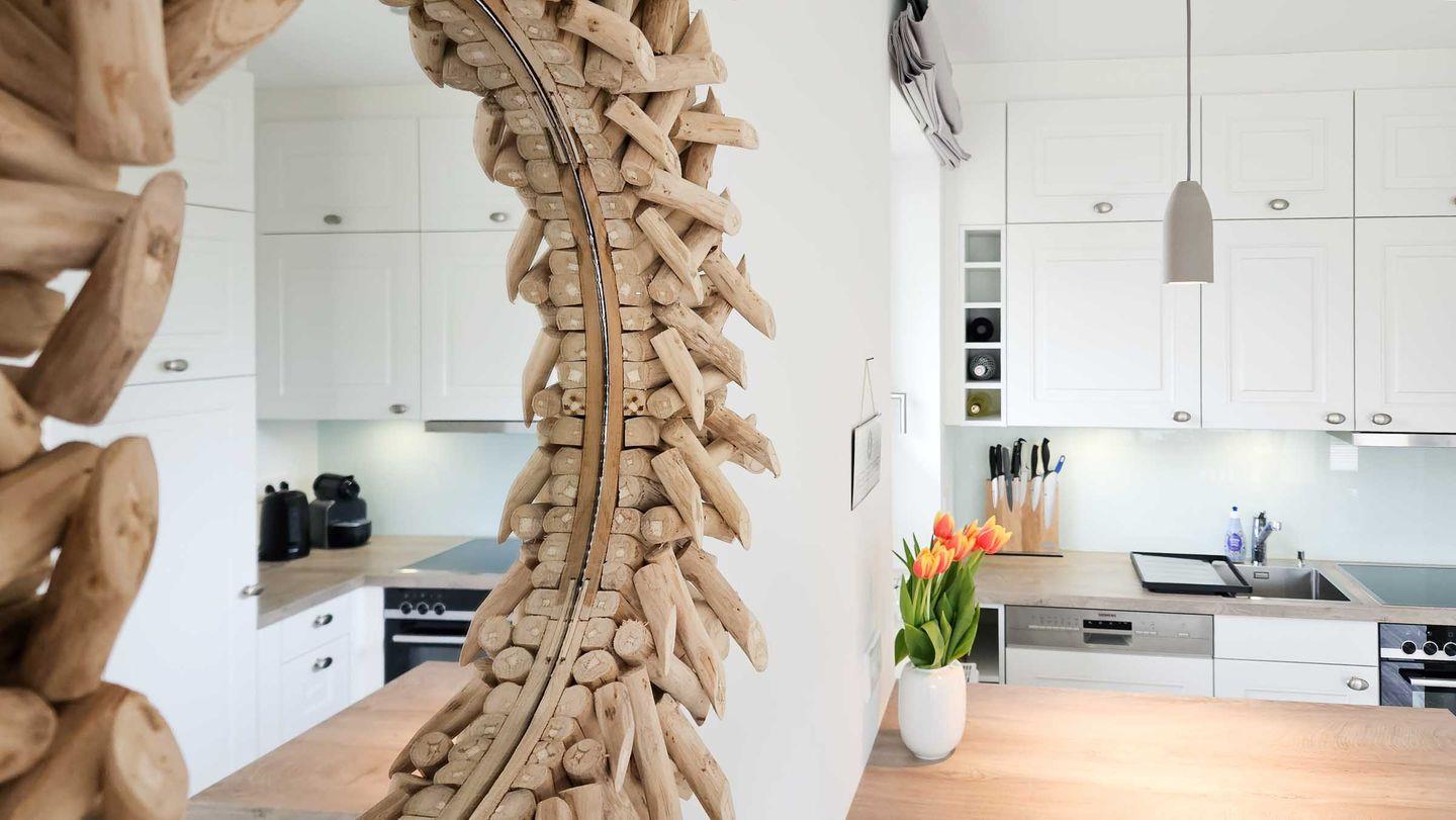 Wohn-/Koch-/Essbereich: Im lichtdurchfluteten Wohnbereich wurde eine Küche integriert und mit einer Essecke im Landhausstil versehen. Der moderne Sitzbereich mit TV und Internet-Radio wurde im Zuge der Renovierung neu gestaltet und lädt zum Verweilen ein. Die großzügige und herrlich gelegene Süd-West Terrasse wurde mit einem Strandkorb und Gartenmöbeln ausgestattet, um die Sonne und Ruhe in vollen Zügen genießen zu können. Ein überdachter Terrassenteil bietet Schatten und Schutz bei Regen.