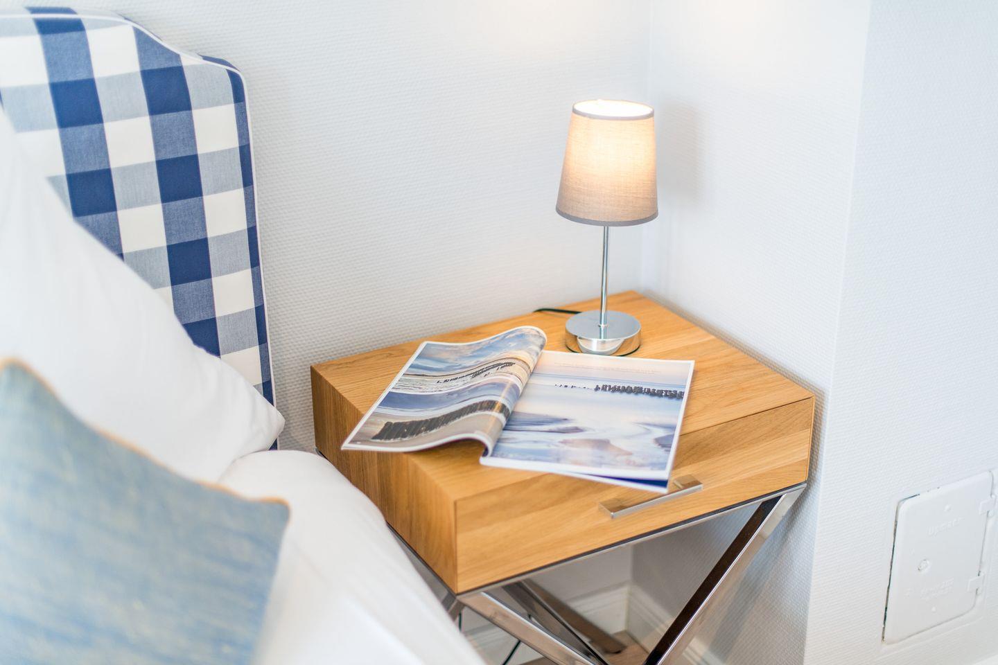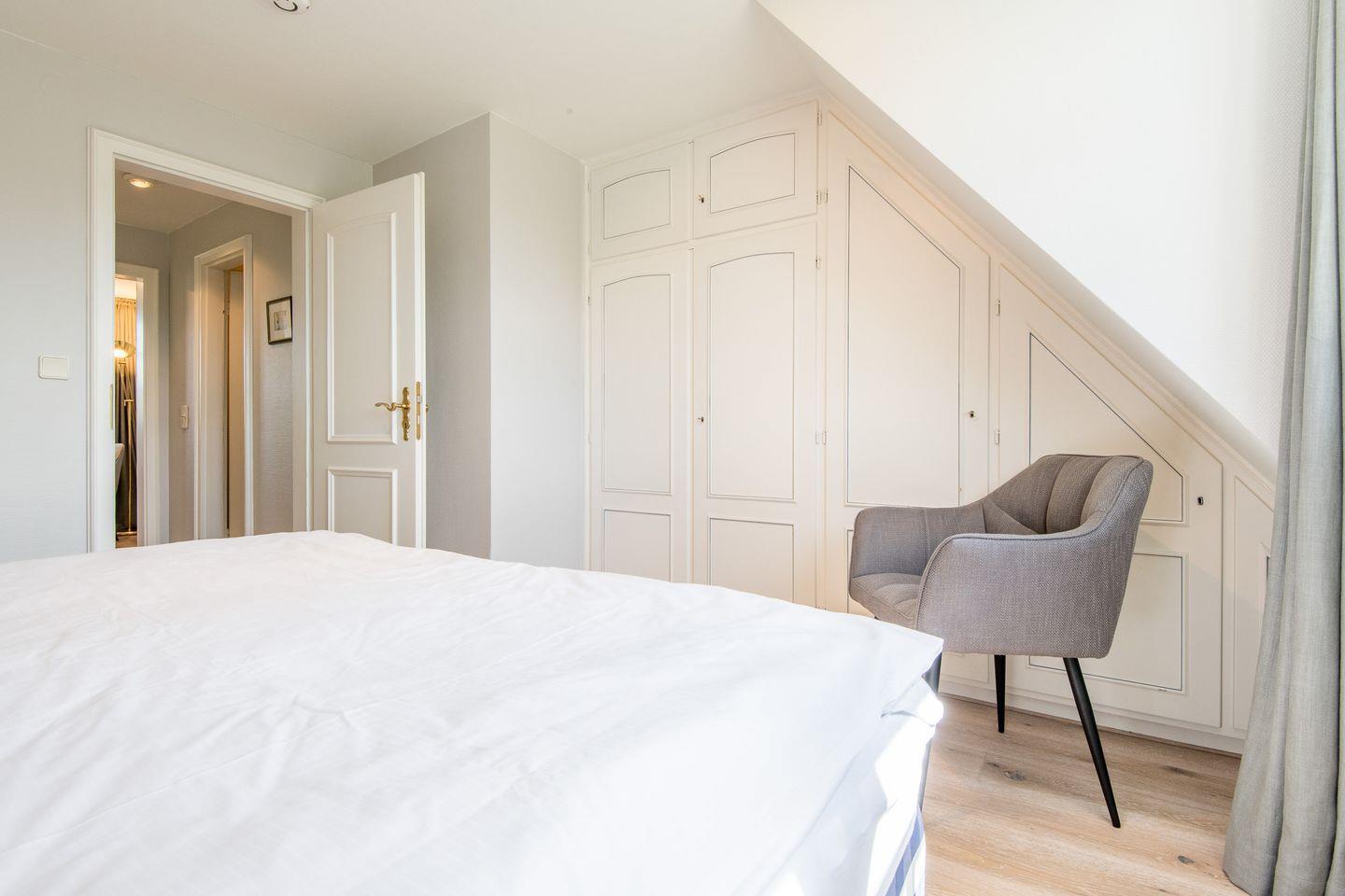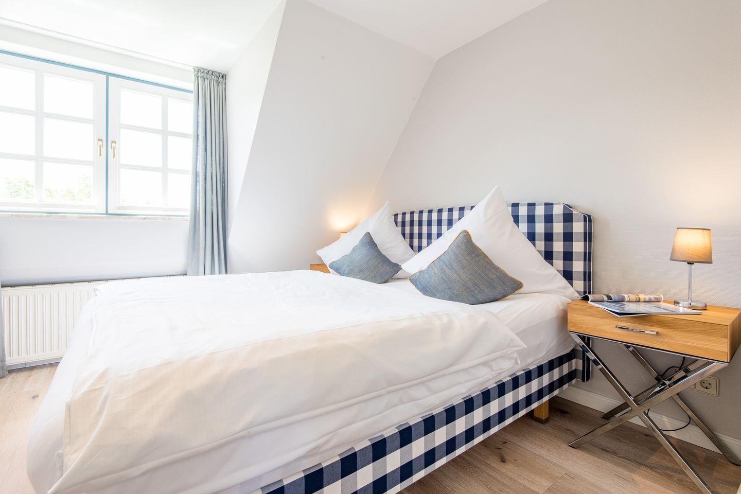 Schlafzimmer 1: Gemütliches Doppelbett von Hästens und hochwertiger Einbauschrank.