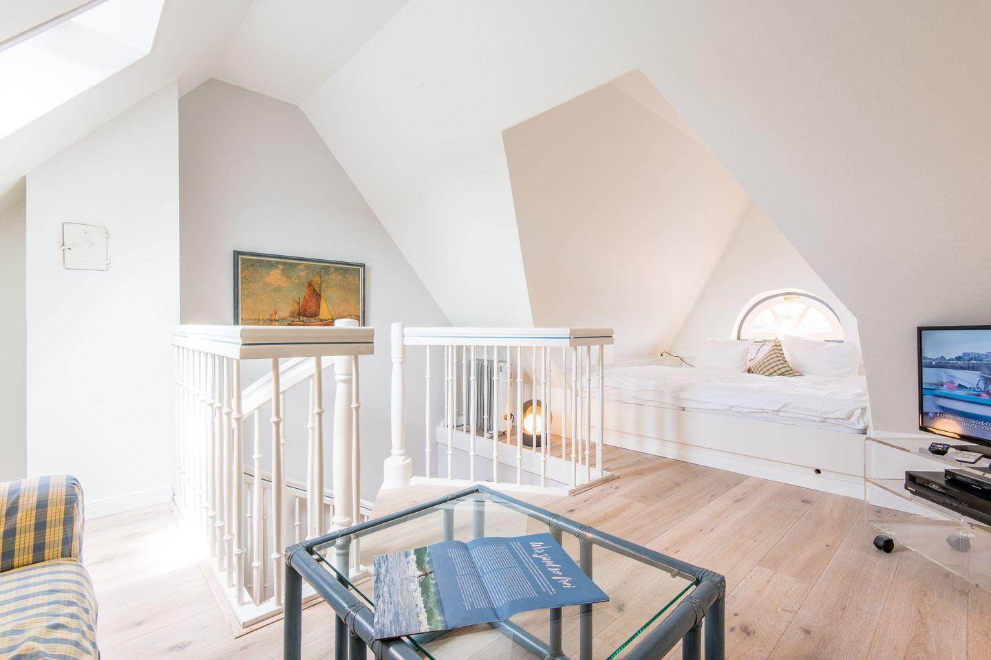 Über eine weitere Wendeltreppe gelangen Sie in das Dachgeschoss: