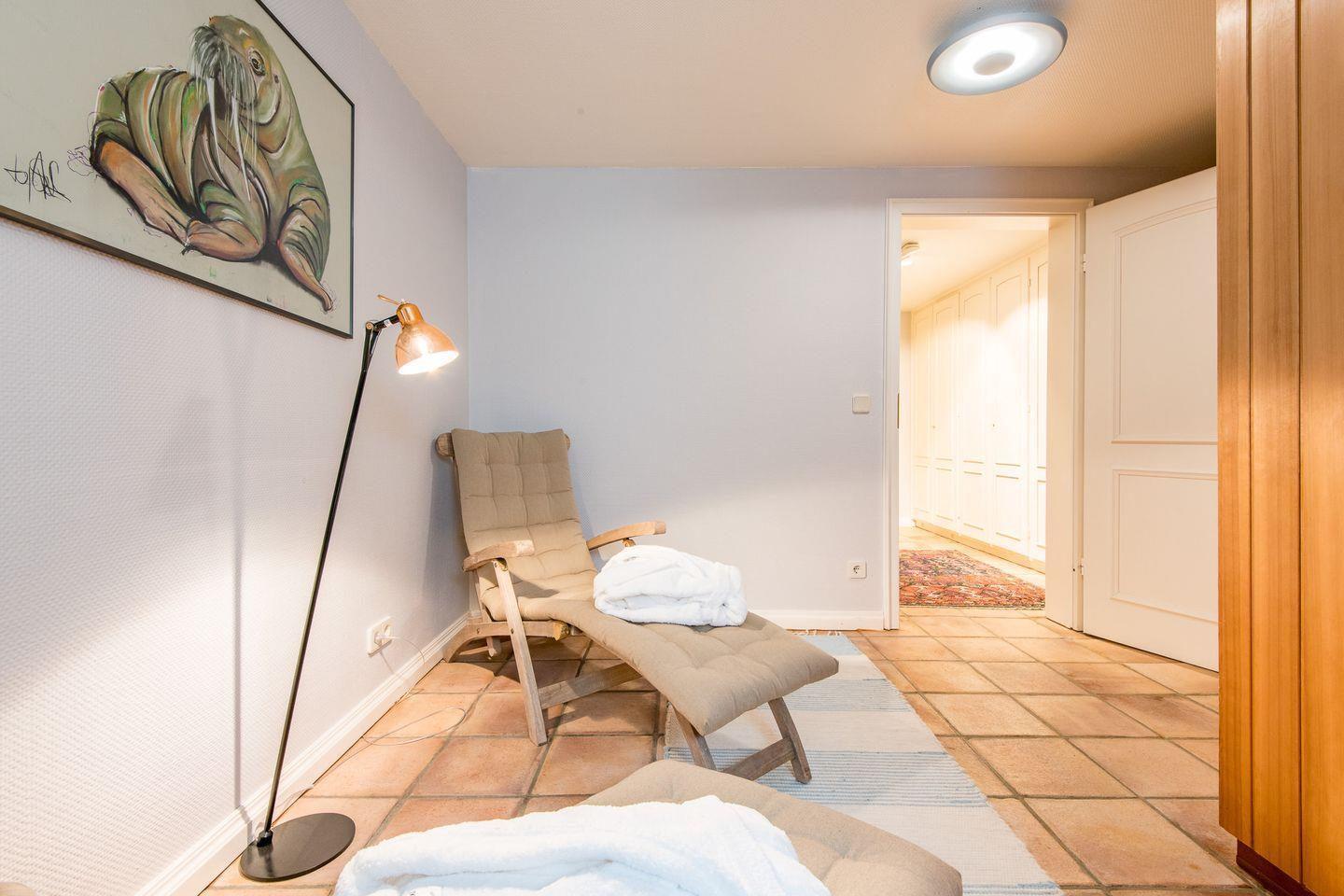 Ruheraum mit zwei Liegen und Sauna (Münzautomat) zur Eigennutzung.