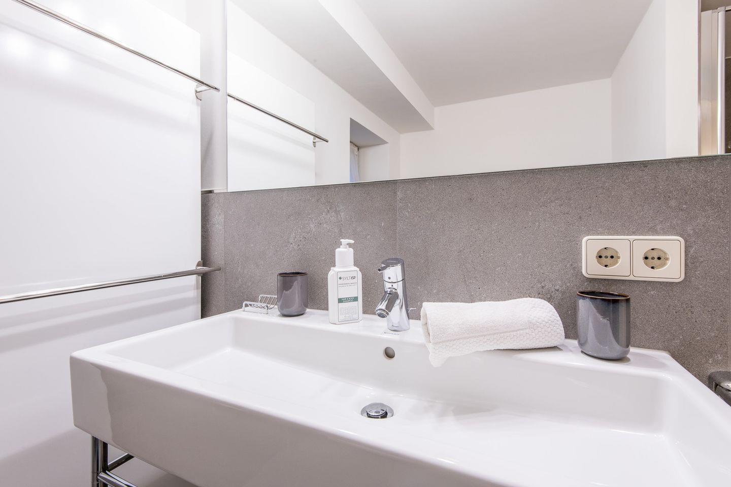 Badezimmer 1: Neues und modernes Duschbad.