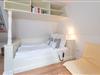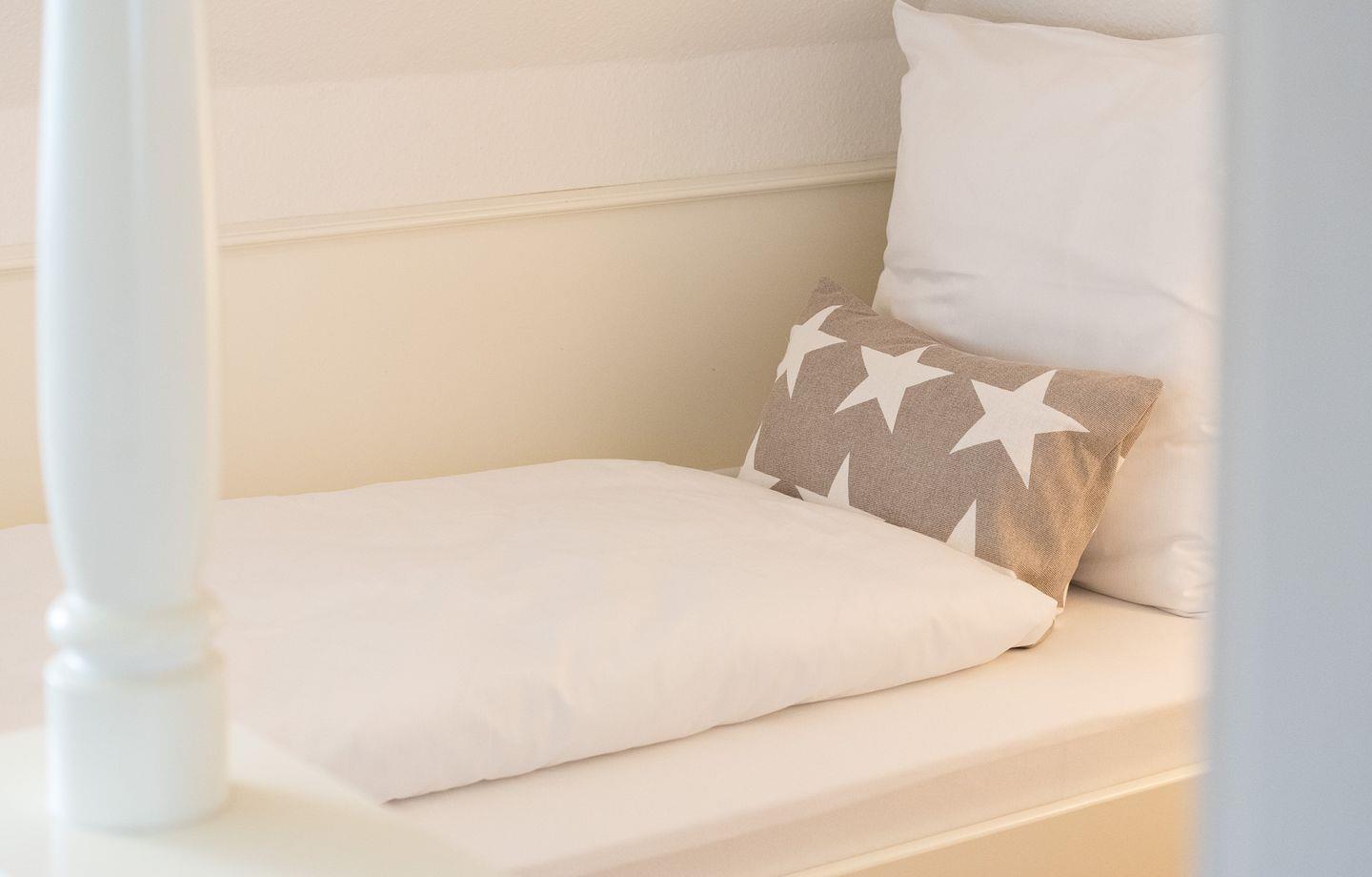 Schlafzimmer 1: Zwei gemütliche Einzel-Kojen-Betten (je 90 x 190 cm) mit Tischlereinbauten und Fenster.