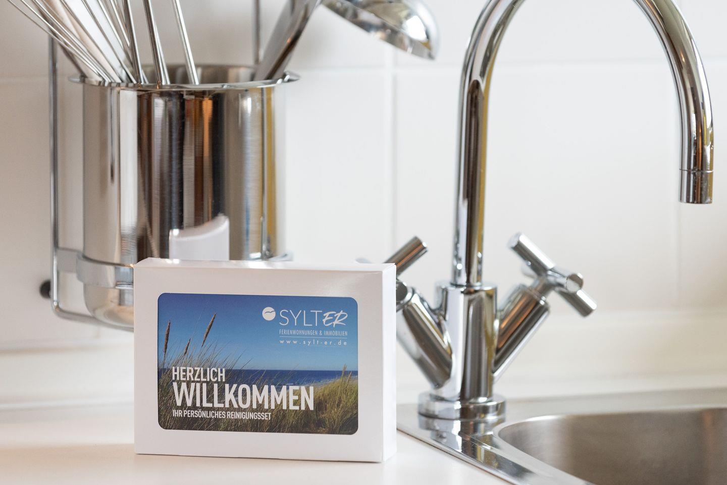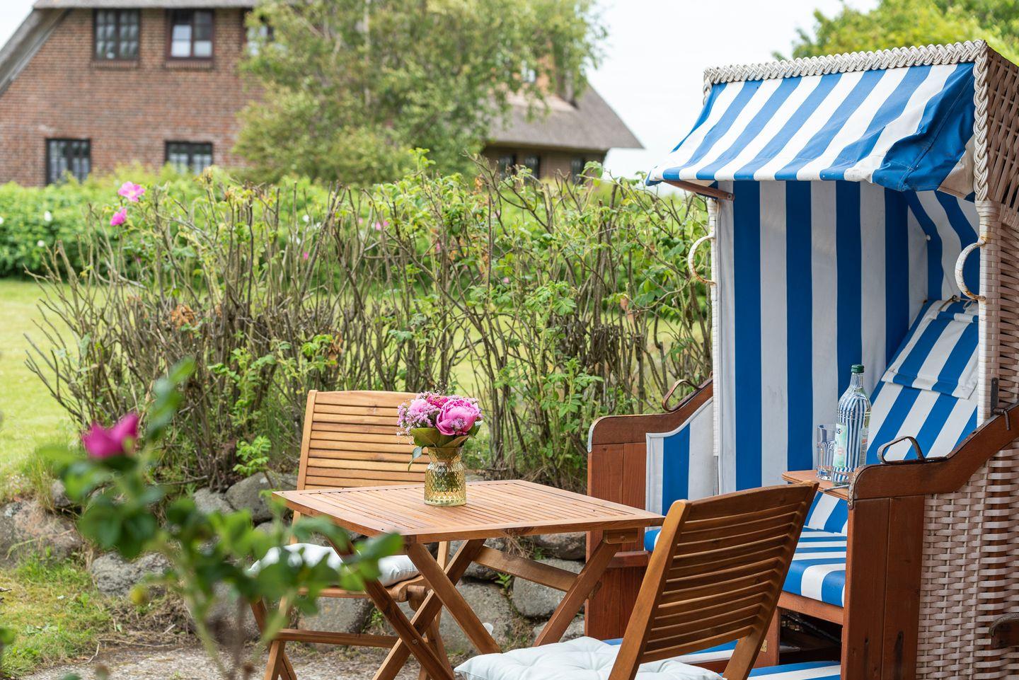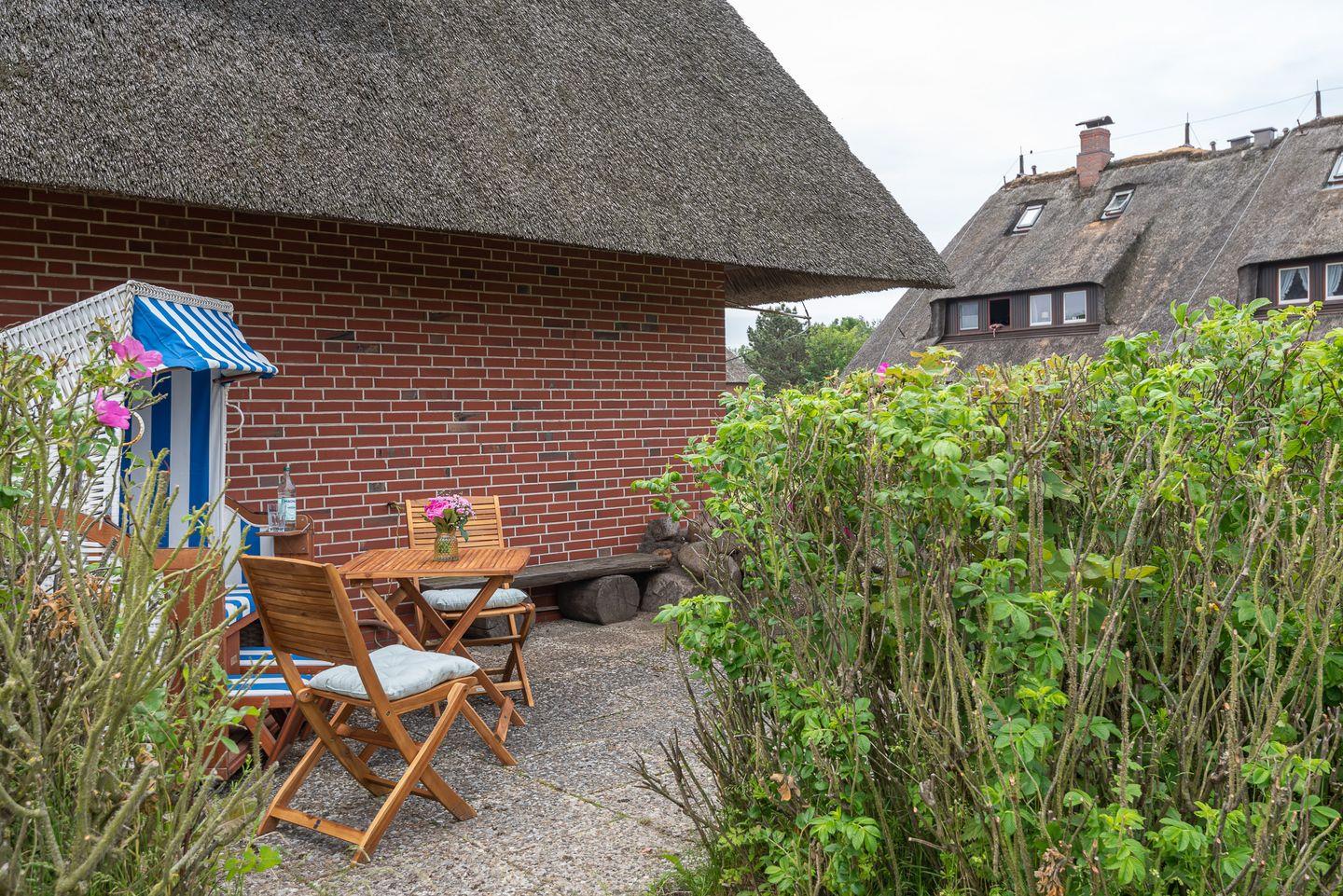Wohn-/Koch-/Essbereich: Der Wohnbereich überzeugt mit seiner gemütlichen Sofaecke, welche zum Verweilen einlädt. Genießen Sie den hervorragenden Blick auf das Wattenmeer und die Braderuper Heide. Die helle Küchenzeile im Landhausstil ist perfekt ausgestattet und grenzt direkt an den Essbereich für 4 Personen. Von hier haben Sie einen ausgezeichneten Blick auf den Kampener Leuchtturm. Zur Wohnung gehört eine möblierte Sonnenkuhle mit Strandkorb und Gartenmöbeln. Diese befindet sich links vorm Hauseingang (unter dem Küchenfenster).