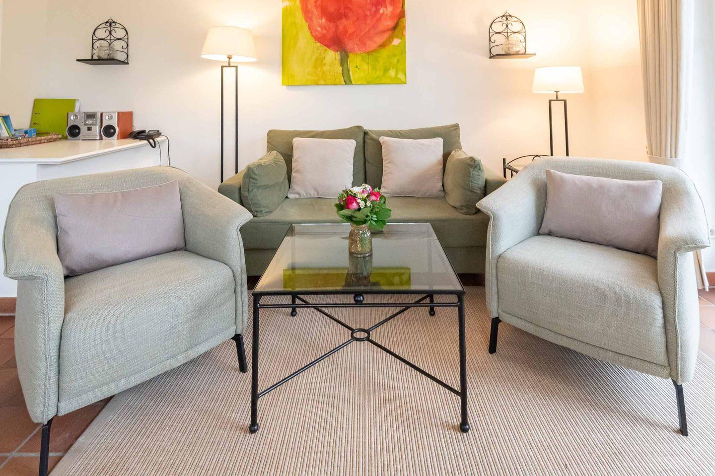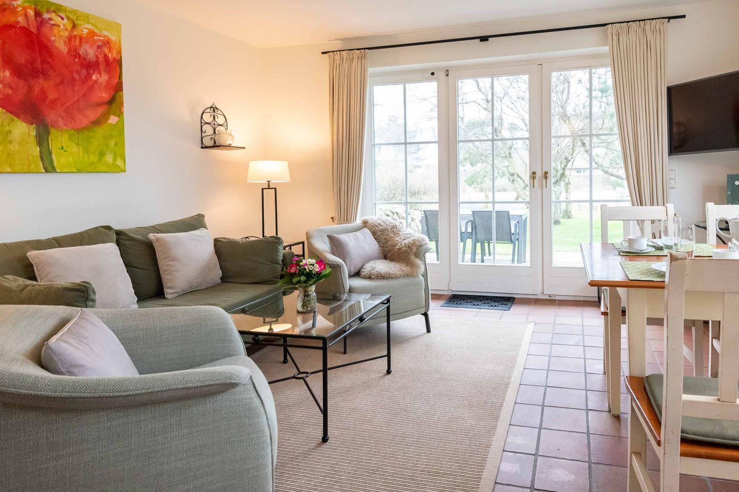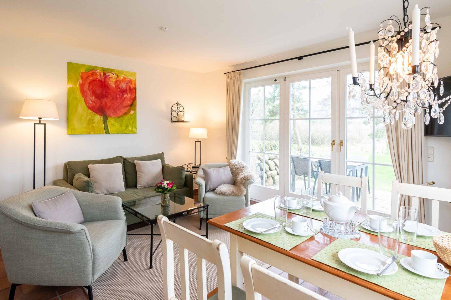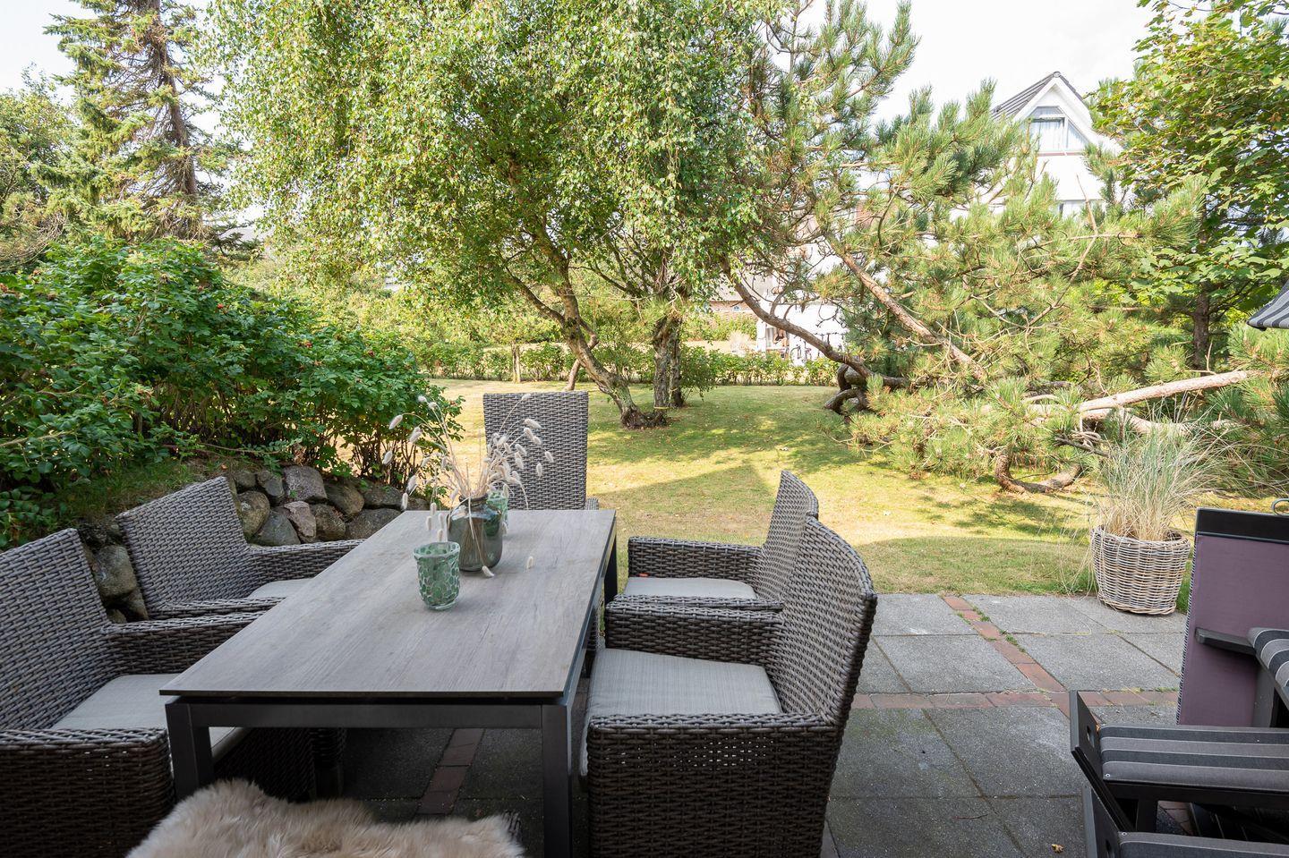 Von diesem Raum aus gelangen Sie auf die saisonal möblierte West-Terrasse und in den schönen, eingewachsenen Garten.