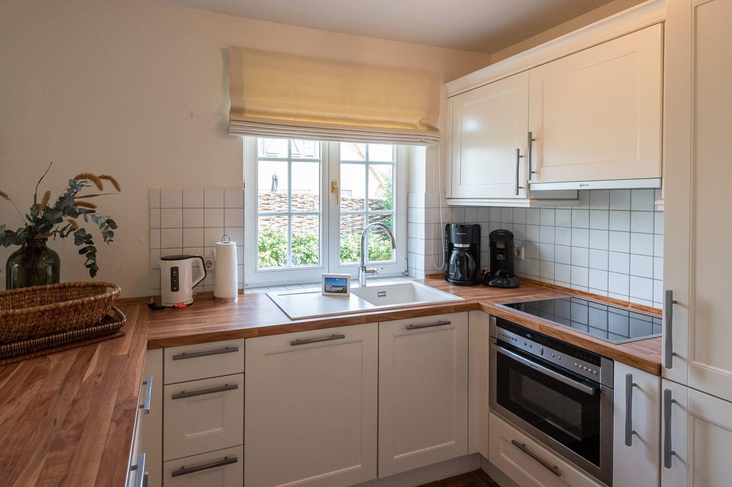 Im Landhausstil eingerichtete Ferienwohnung mit 3 Zimmern auf ca. 76 m² bietet Platz für bis zu 4 Personen. Die West-Terrasse mit Blick in den Garten lädt zum langen Verweilen ein.