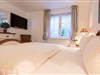Schlafzimmer 1: Doppelbett, Kleiderschrank, TV und Fenster.