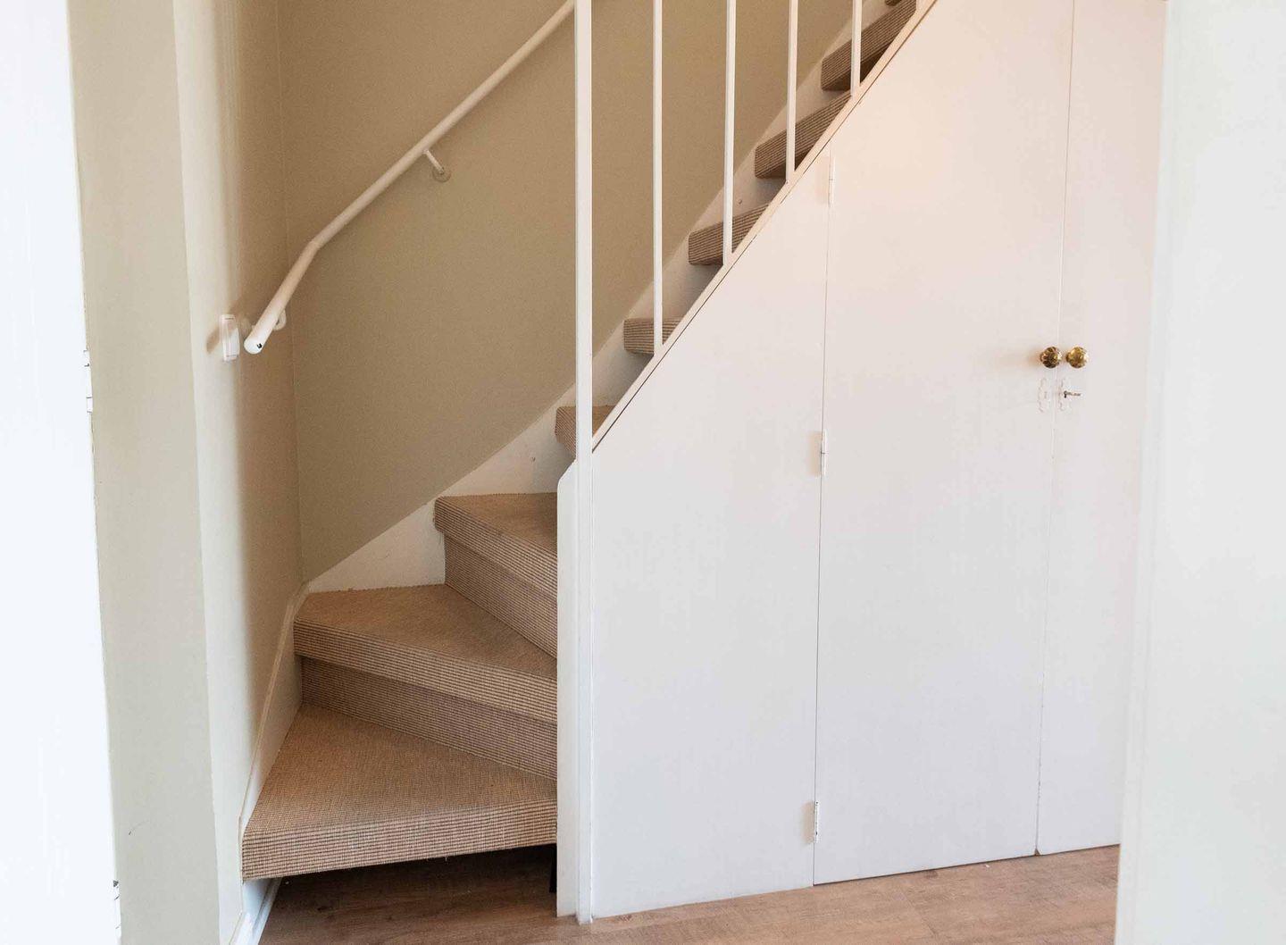 Eine gut begehbare Treppe mit Treppengeländer führt in das offene Dachgeschoss, welches über drei Fenster verfügt und somit Licht aus drei Himmelsrichtungen hineinlässt: