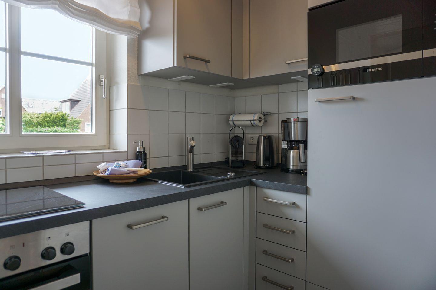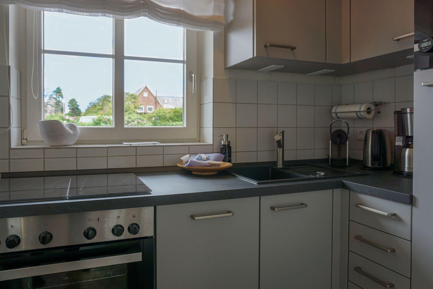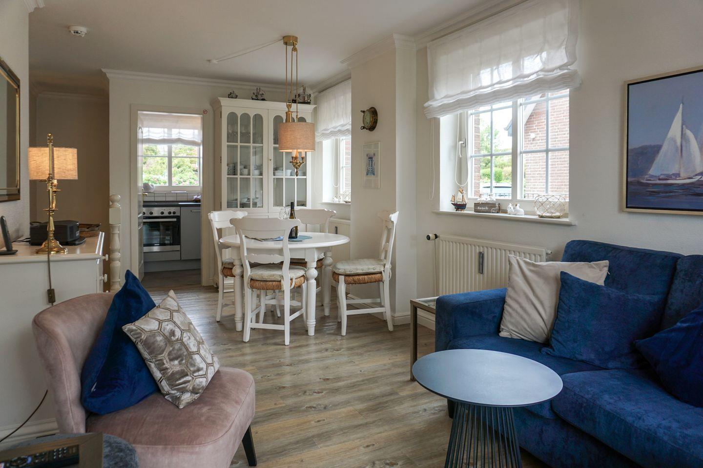 EG: Wohn-/Essbereich mit Flatscreen-TV, CD-Player, DVD-Player, Stereoanlage, Blu-Ray Player, Radio und WLAN, separate Küche mit Backofen, Geschirrspülmaschine, Mikrowelle, Wasserkocher, Nespressomaschine und Kaffeemaschine, sonnige Süd-Terrasse mit Gartenmöbeln und Strandkorb (möbliert ca. von April-Oktober)