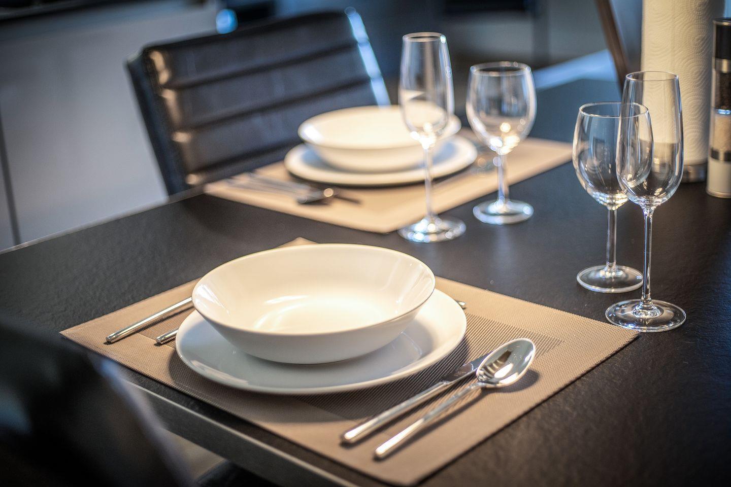 Mikrowellen-Backofen-Kombi, Geschirrspüler, Induktionskochfeld, Nespressomaschine, Kitchen-Aid Mixer;