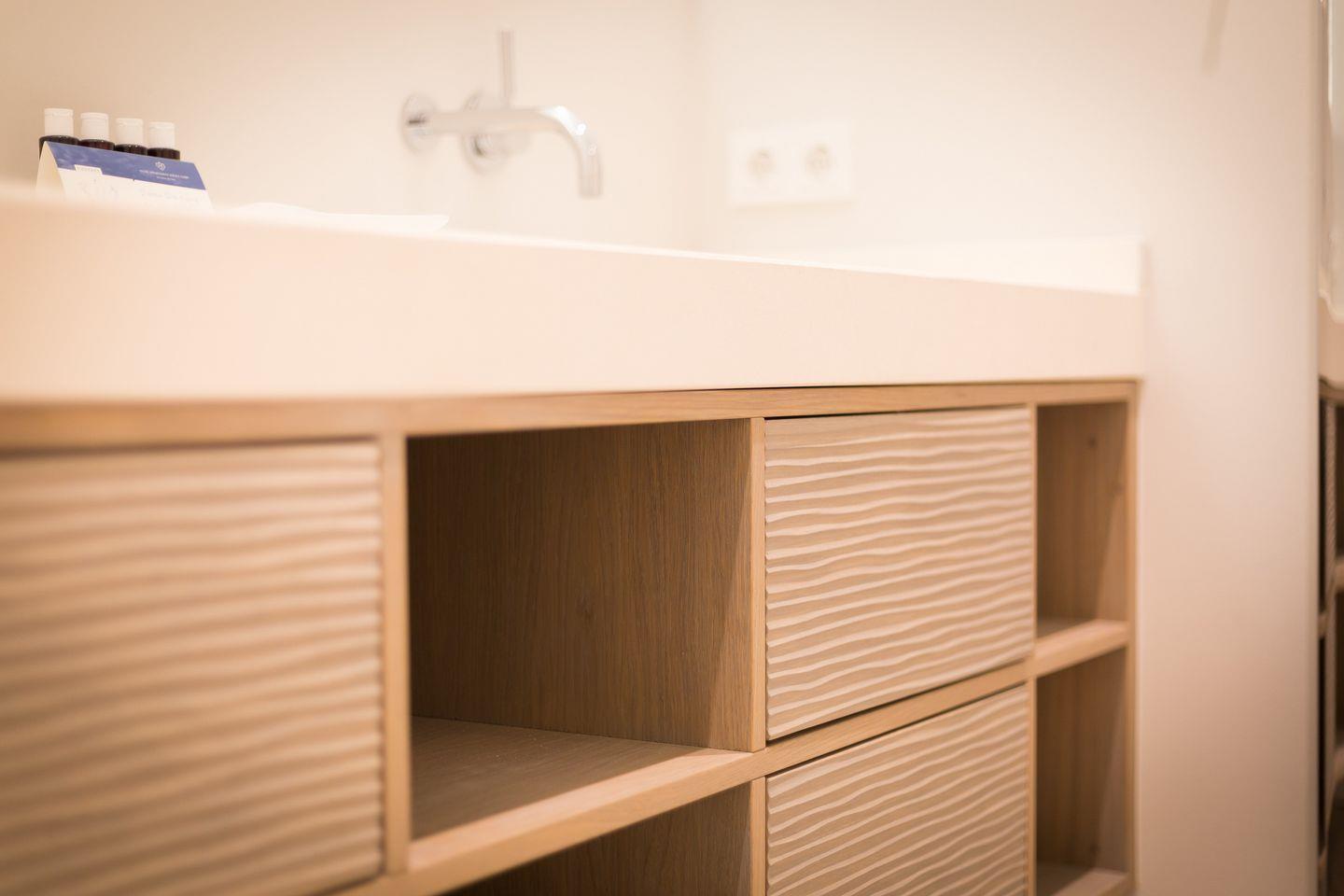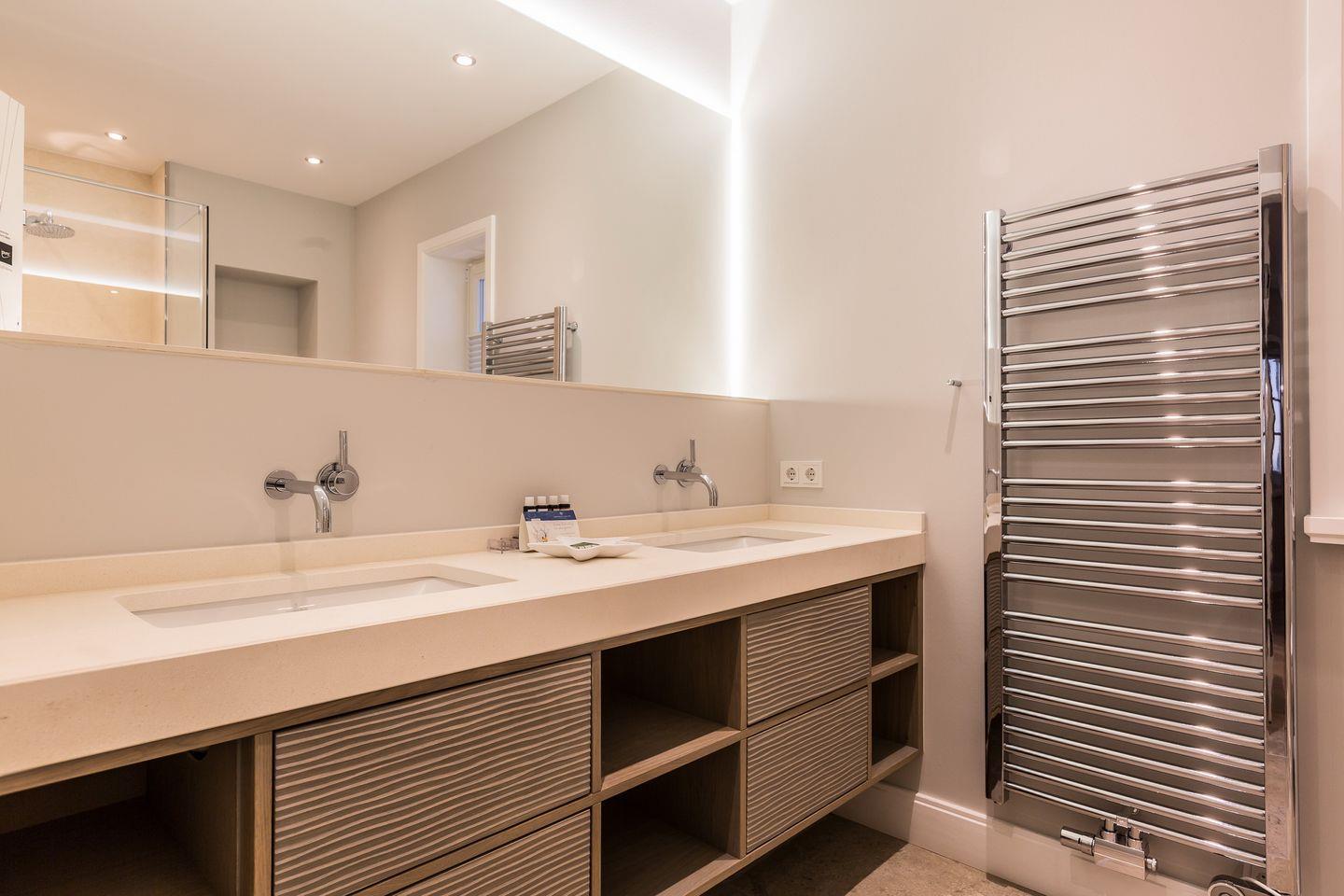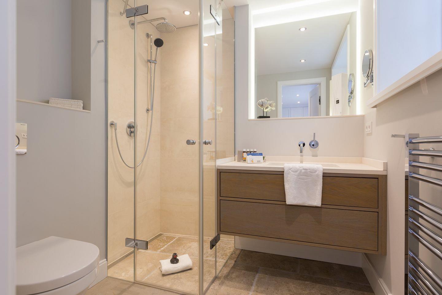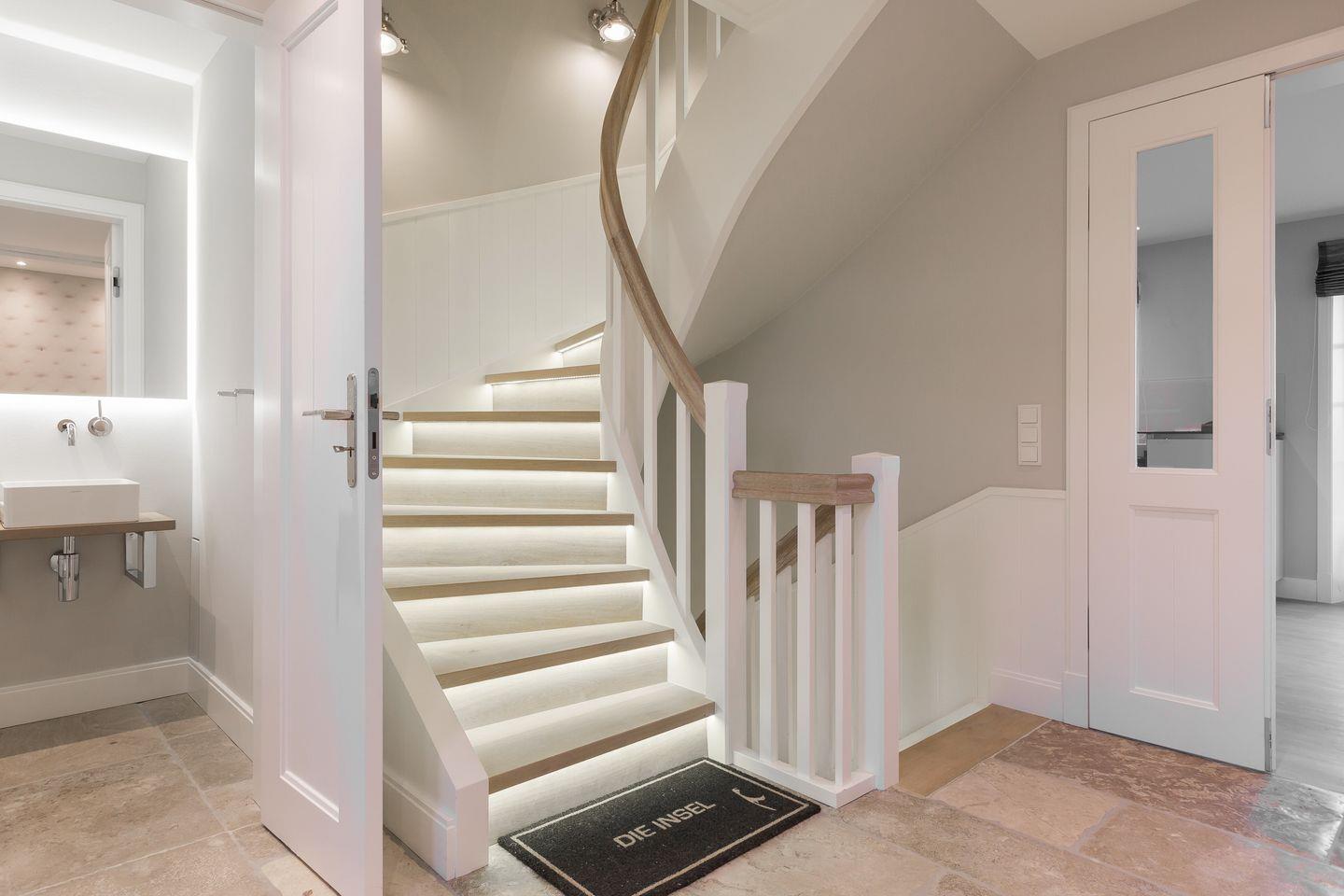 Im Obergeschoss befinden sich zwei Schlafzimmer mit Boxspring-Doppelbetten und jeweils einem Bad en Suite. Vom Obergeschoss aus haben Sie einen einmaligen Blick auf die Nordsee und das Treiben auf der Promenade in Wenningstedt.