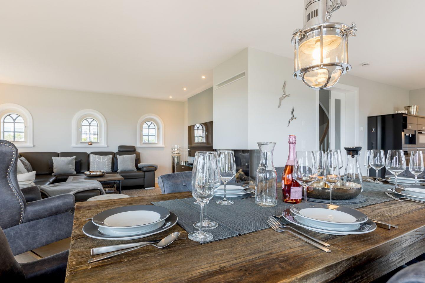 Vom großzügigen Eingangsbereich erreichen Sie die offene Wohnküche mit bodentiefen Fenstern, die die Sylter Sonne in das Zimmer strahlen lassen. Vom Wohnzimmer aus geht es auf die große Terrasse und in den Garten, in dem sich Ihre Kinder im Sommer wohlfühlen können. Die eingebaute Küche lässt jedes Hobbykoch-Herz höherschlagen, denn hier wird es Ihnen an nichts fehlen.[nbsp][nbsp]Der große Esstisch eignet sich perfekt für ein leckeres Familiendinner oder ein ausgiebiges Urlaubs-Frühstück. Auf dem gemütlichen Ecksofa können Sie die Wärme aus dem großen Gaskamin genießen und den stressigen Alltag hinter sich lassen. Das gesamte Haus ist top-modern eingerichtet und bietet Ihnen allen Komfort, den Sie in Ihrer schönsten Zeit des Jahres brauchen.