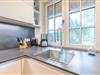 Auch die separate Küche greift das Farbkonzept der Wohnung auf und ist mit allem ausgestattet, was Sie zum