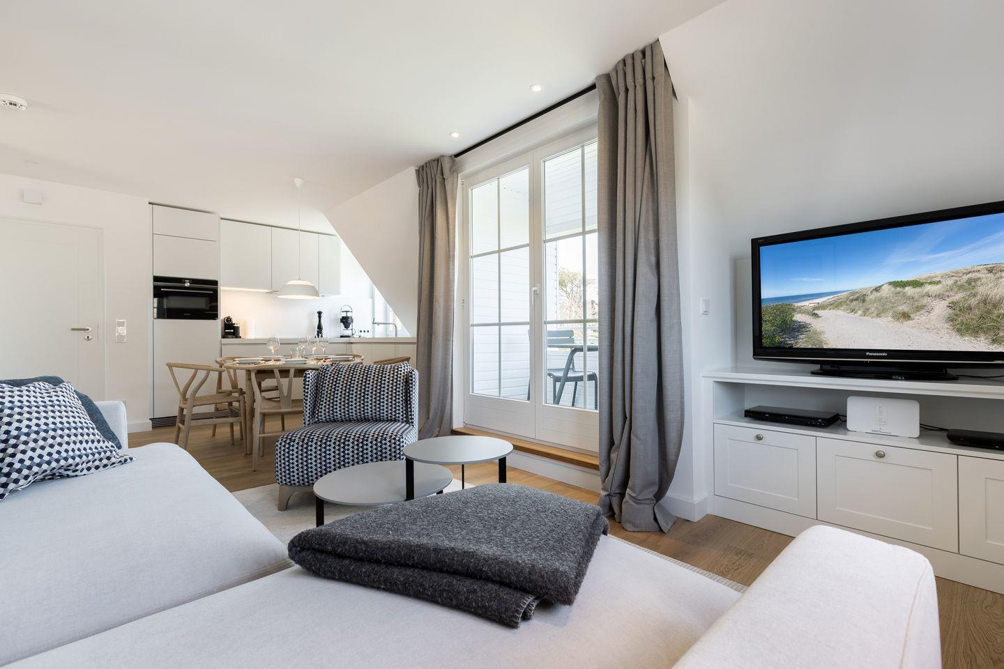Das lichtdurchflutete und sehr großzügige Appartement bietet Ihnen einen schönen Wohnkomfort für Ihren relaxten Urlaub. Der zum Westen ausgerichtete Balkon mit Fermob Balkonmöbel laden zum Open-Air-Verweilen ein.