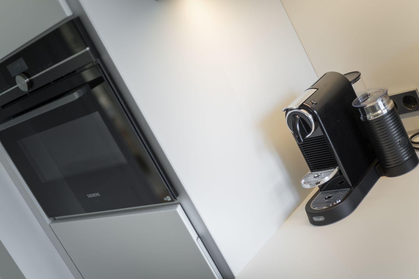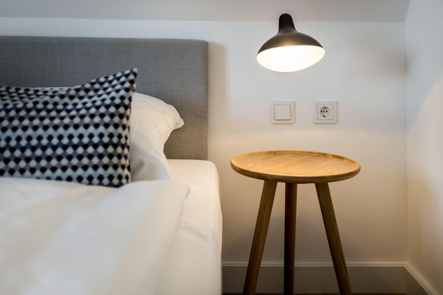 OG: Geschmackvoll eingerichteter, heller Wohnraum mit Eichenparkett, 3x Flatscreen-TV mit Kabel-TV und Internet (Netflix, Youtube, usw.), Bluetooth Sound Box, WLAN, . Integrierte Bluthaup Küche mit Geschirrspüler, Microwelle und Backofen. Bad mit Antonio Lupi Waschtisch und hinterleuchtetem Spiegel inkl. Bluetooth Lautsprecher, sowie Dusche und WC mit Vola Armaturen. Ein schöner Raum mit Boxspring Bett (ca. 1,8mx2m) und viel Schrankplatz. Heimelige, kleine West-Loggia für einen beschaulichen Abendausklang.