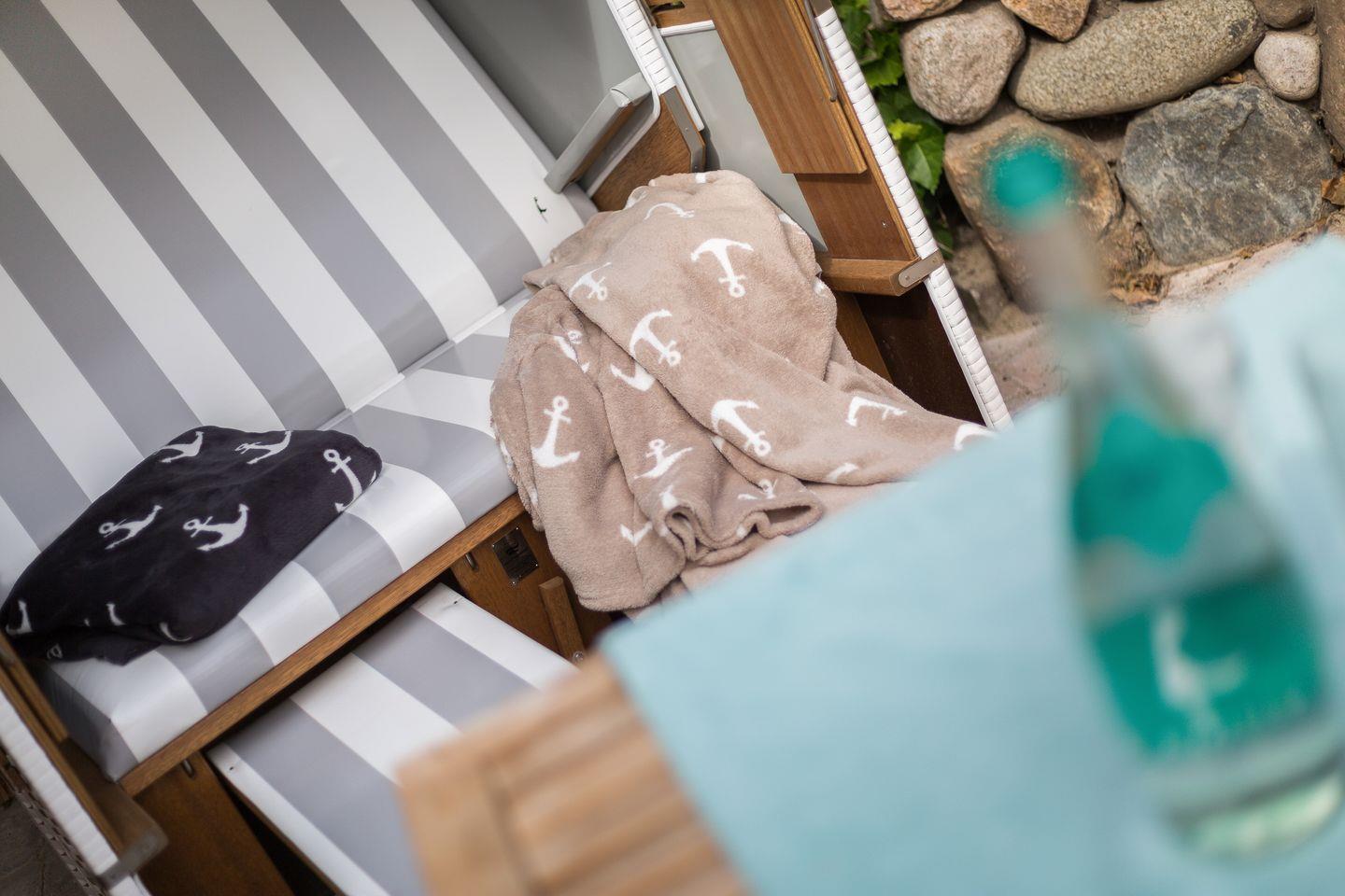 EG: kombinierter Wohn- und Schlafraum mit Ruf-Boxspringbett, Lounge-Sofa mit zusätzlicher Schlaffunktion, Flatscreen-TV, BOSE Bluetooth Soundtouch, kostenloser WLAN- Zugang, Essbereich für zwei Personen, Küchenzeile mit Backofen, Geschirrspüler, Induktionsherd inkl. Grillplatte, Nespressomaschine, Kaffeemaschine, SMEG Kühlschrank, Duschbad mit WC und Föhn, Terrasse mit Gartenmöbeln und Strandkorb mit Liegefunktion.