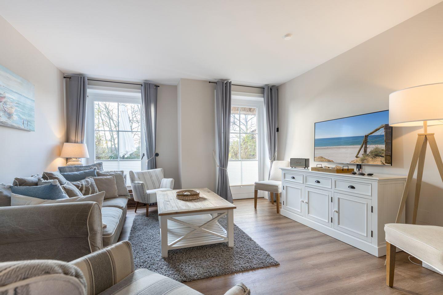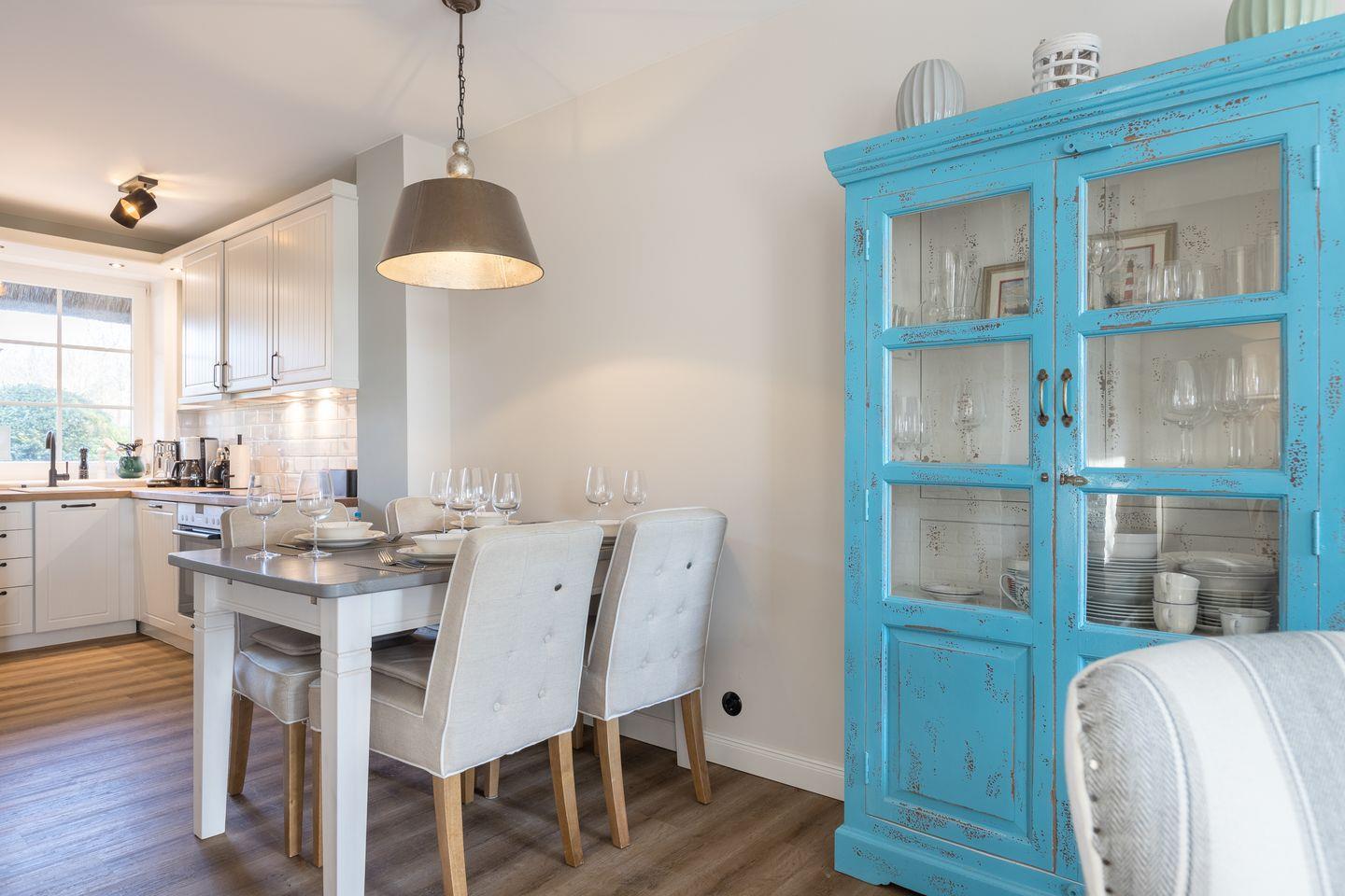 Sie möchten Ihren Sylt-Urlaub in gemütlicher, nordischer Atmosphäre verbringen? Dann sind Sie in dieser Ferienwohnung unter Reet genau richtig aufgehoben. Der große Wohnbereich ist lichtdurchflutet und bietet viel Platz zum entspannen . Die offene Küche eignet sich perfekt, um ein leckeres Urlaubs-Dinner zu zaubern oder mit der Familie ein ausgiebiges Frühstück zu genießen.